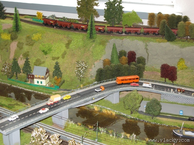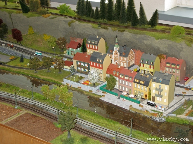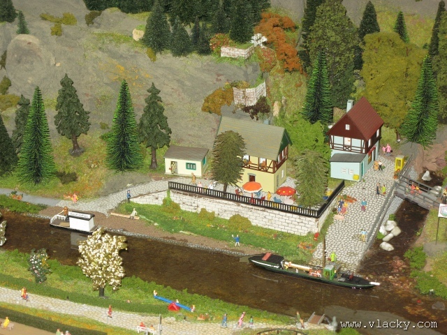 Velké modelové kolejiště ztvárňující okolí Labe s tratí Bad Schandau - Pirna