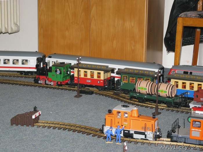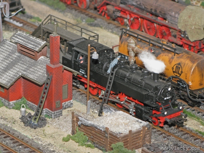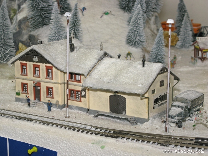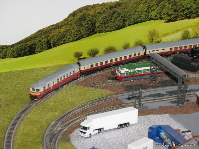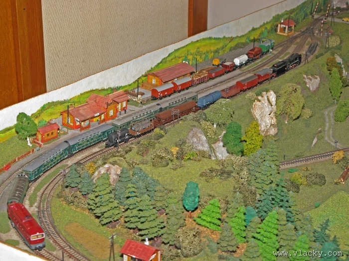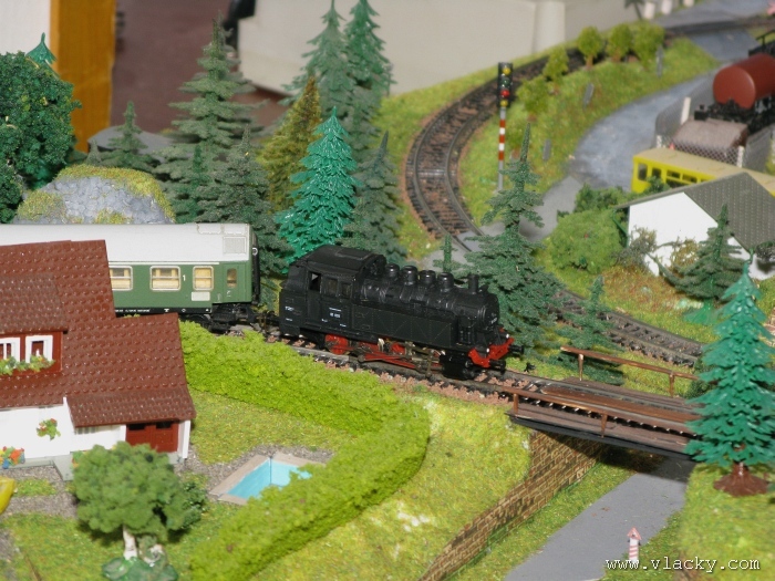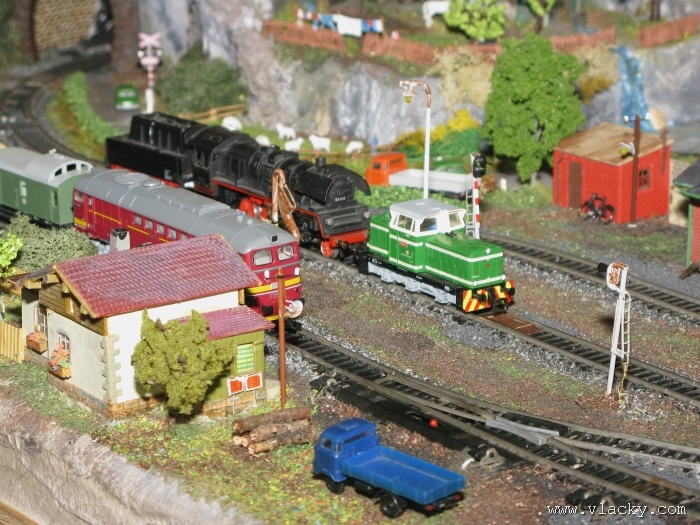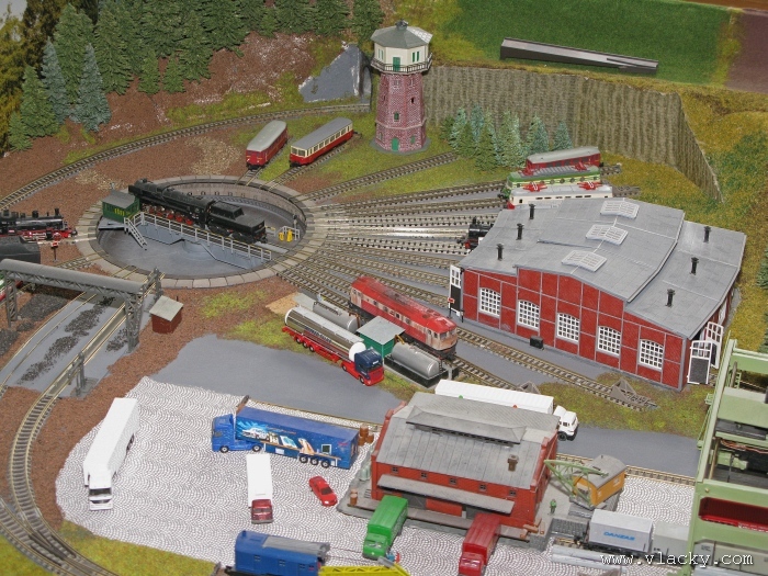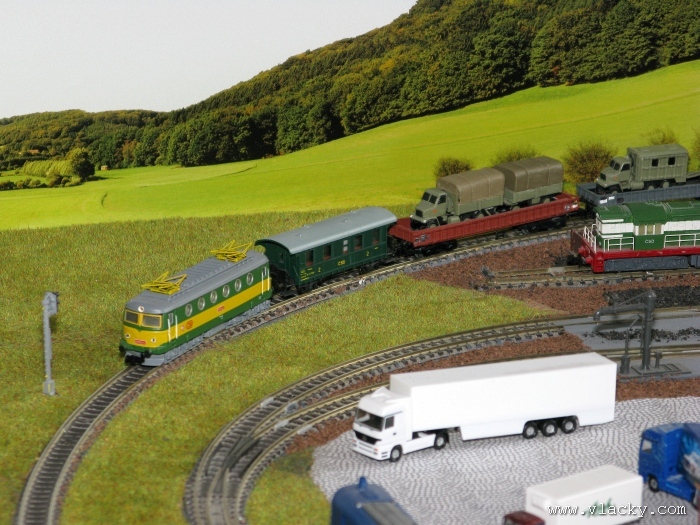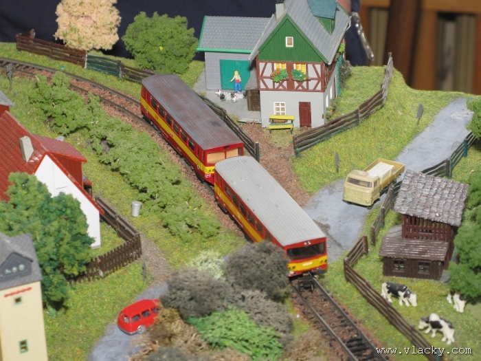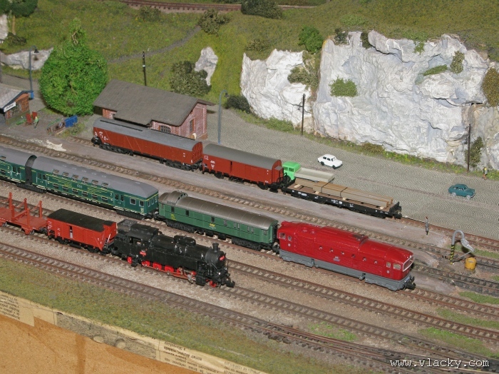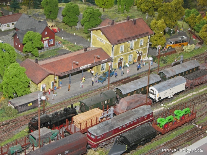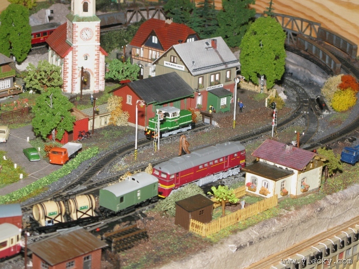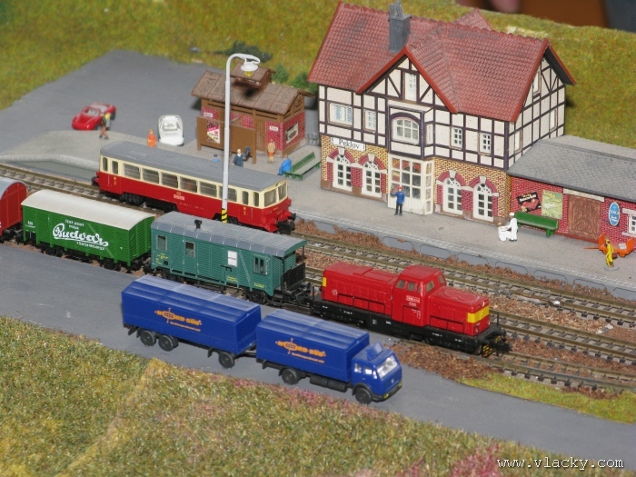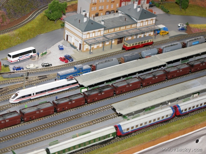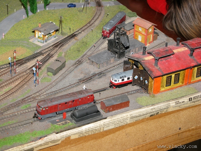 I letošní výstava trvala celkem 4 dny od čtvrtka 24.4 do neděle 27.4. Zúčastnil jsem se opět v sobotu a ve vyhrazeném čase jsem se snažil zachytit maximum foto a video materiálu. Celou místnost pro sebe zabrala prezentace velké zahradní železnice. Modely samotné si tak nepotrpí na věrnost zpracování detailů, jsou však dostatečně robustní pro náročný provoz. Díky své velikosti není problémem, aby lokomotivy byly vybaveny např. zvukovými generátory. Klasická kolejiště všech modelových velikostí byla potom soustředěna v dalších propojených místnostech. Snažil jsem se fotogalerii sestavit tak, aby svým obsahem vhodně doplňovala reportáž z výstavy 2007. Proto bych si dovolil upozornit spíše na kolejiště, která jsem ještě neměl zdokumentována. Hned po levé straně při vstupu do místnosti bylo velké kolejiště v modelové velikosti N. Zajímavé je i malé kompaktní kolejiště v modelové velikosti TT, které není o nic větší než stůl a plně tak naplňuje označení této velikosti TT = Table Top. Přitom na tak malé ploše byly ztvárněny zajímavé náměty. Podobné velikosti je jiné firemní kolejiště Roco velikosti H0, které není tak členité, ale ztvárňuje zajímavou předlohu zimní krajiny. Na první pohled se může zdát, že modelování zasněžené bílé zimní krajiny je daleko jednodušší, naopak je nutné věnovat větší pozornost patinování a detailům, které charakterizují toto roční období, např. navátý sníh, námraza nebo rampouchy. Při každé výstavě se rád zastavím u zajímavé diorámy lokomotivního depa. Tento námět je z modelářského pohledu velmi pěkně zpracován. Protože se však nejedná o klasické kolejiště a neprohání se po něm soupravy vlaků, zůstává tak trochu stranou pozornosti dětských návštěvníků. Tentokrát jsem se soustředil na část depa, kde se provádí zauhlování parních lokomotiv. Samozřejmě i na letošní výstavě byly ke shlédnutí modely ve vitrinách a ukázka diarámat. My starší si ještě dobře pamatujeme na náš oblíbený Merkur. Je k sehnání i dnes s daleko bohatší nabídkou. Pokud se unavíte prohlídkou malých železničních modelů, možná přijde vhod něco jiného. Před budovou kulturního domu se prezentoval Veterán klub Pardubice se svým vozovým parkem. Ti menší se mohli svézt na skutečném parním vláčku Sičovy drobné železnice a naopak ti odvážnější třeba pouštní verzí Mercedes Benz 15 A z roku 1941. Další informační zdroje: