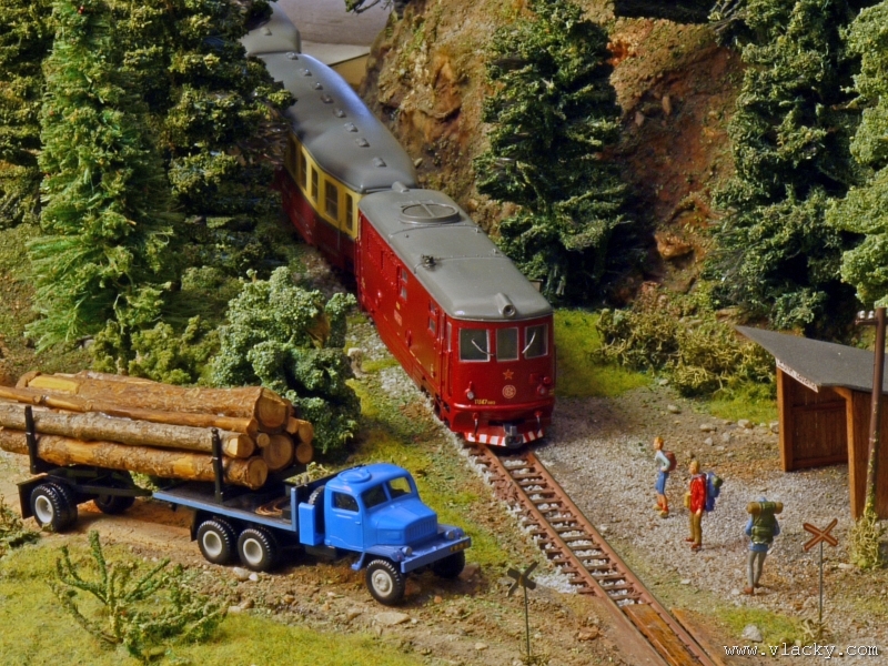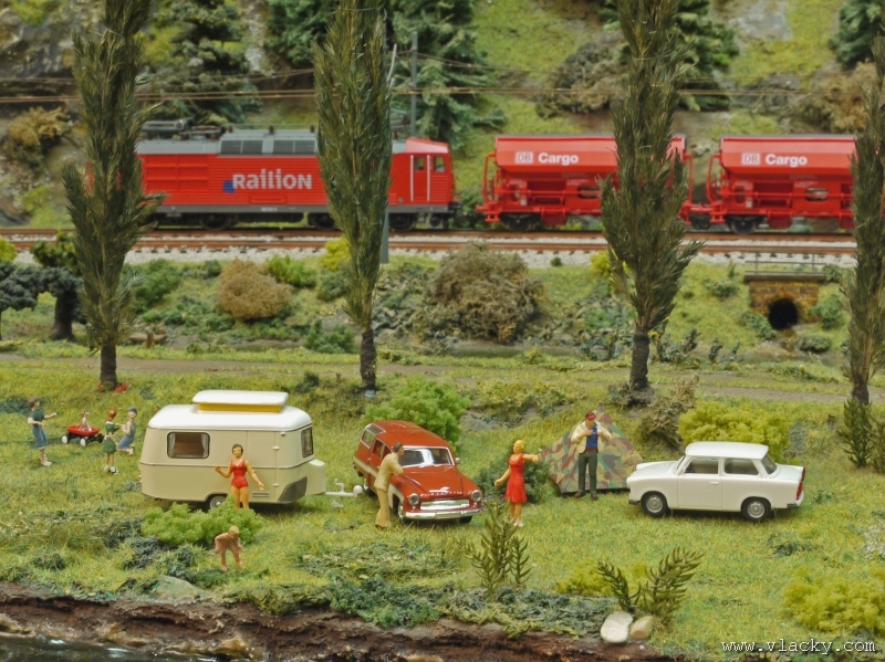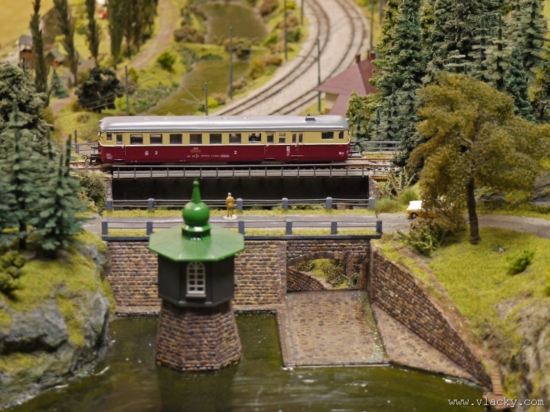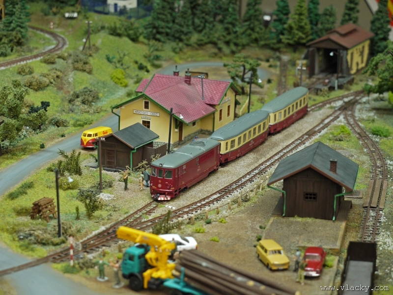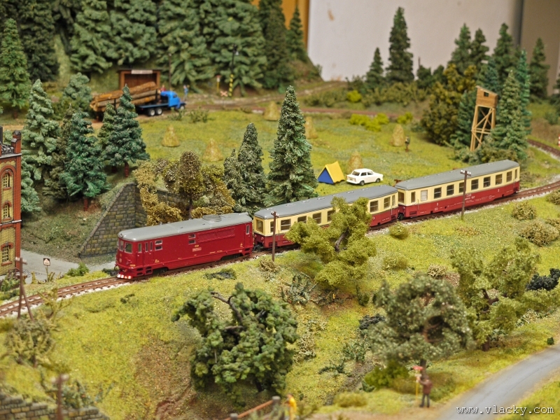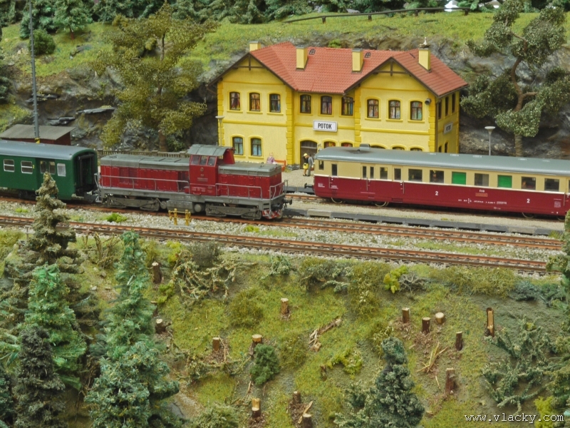 Skutečně začátkem roku 2009 byl oznámen termín foto-videokace na klubových stránkách KŽM Přerov. Začátkem roku bývá všeobecně volněji, většina klubů si své pravidelné výstavy plánuje v předvánočním období. Tentokrát měla být foto-vieokace časově rozdělena na dvě oddělené části. V rámci jednoho dne tak měla proběhnout samostatně fotoakce a samostatně videoakce. Je to celkem pochopitelné, protože požadavky na focení jsou většinou protichůdné s požadavky na natáčení. Týden před plánovaným termínem jsem byl mailem ubezpečen, že foto-videokace proběhne, i když počet přihlášených účastníků byl malý. O to více jsem se mohl těšit na exkluzivní záběry. Po deváté hodině jsem dorazil do klubu, kde již bylo vše připraveno jako ve filmařském studiu. K dispozici byl nachystaný celý štáb členů klubu, doplňková osvětlovací technika a modré pozadí, které bylo možné použít v případě záběrů, které by zabíraly i prostor mimo kolejiště. V provozu ten den byly většinou soupravy ze IV. epochy. Na hlavní dvojkolejné trati jsme si potom mohli vybrat z množství souprav IV. i V. epochy, které byly připraveny ve skrytých nádražích. Dával jsem přednost jen několika málo soupravám, které jsem natáčel při jízdách na dvojkolejné trati z mnoha pohledů, které jsem následně mohl sestříhat do obsahově kompaktnějších klipu. Při focení jsem se snažil zachytit spíše detaily na kolejišti, které kolejiště celkově oživují a zpestřují. Např. bych zmínil hnízdo čápů na budově pivovaru "Krestan", fotograf u trati, který kempuje se svým Trabantem nedaleko na louce, funkční drtič kamene, který plnil přistavené vozy na vlečce. Sobotní poklid narušoval zvuk pily z nedaleké zahrádky. V depu stanice Kamenice pózovala filmařům parní lokomotiva 354.121. Soukromí zemědelci zatím využívali slunečné počasí ke sklizni a sušení sena na loukách podél hlavní dvojkolejné trati, zatímco v nedalekém kempu si užívali dovolenkáři koupání a sportovního vyžití. A když nic jiného, tak ti starší se aspoň vyhřívali na zápraží. Díky malému počtu účastníků jsme neměli problém se dohodnout a podle možností jsem fotil nebo natáčel. Navíc jsme si mohli pořídit záběry ze všech možných i nemožných úhlů nejen z prostor před kolejištěm, který bývá vyhrazen návštěvníkům výstav, ale i z druhé strany. Přesto můj plánovaný čas rychle utekl a stejně jako minule, ani teď jsem zdaleka nestihl zachytiti všechny zajímavé detaily. Takže zase příště... Další informační zdroje: