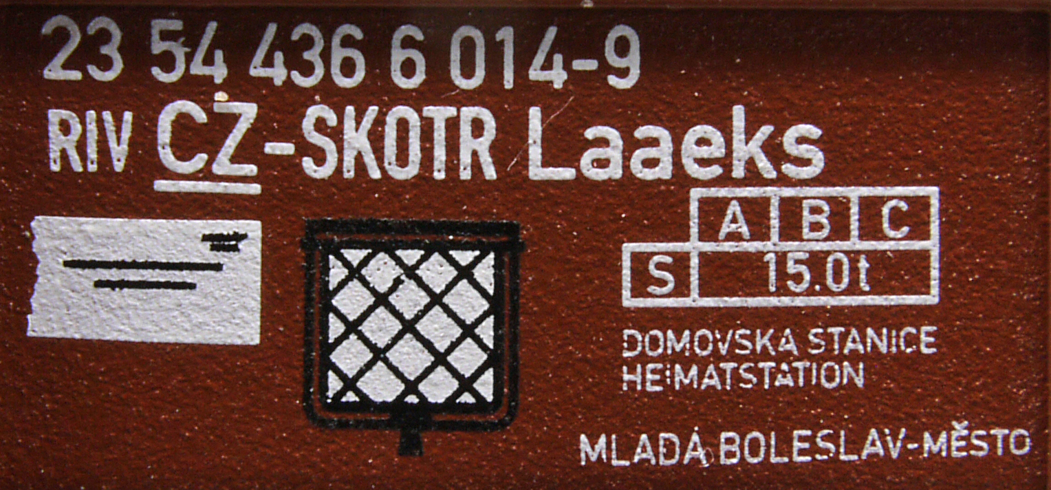 | • 23 54 436 6 014-9 | → | nákladní, nezávislé nápravy, pevný rozchod, soukromý vůz, RIV, PPV |