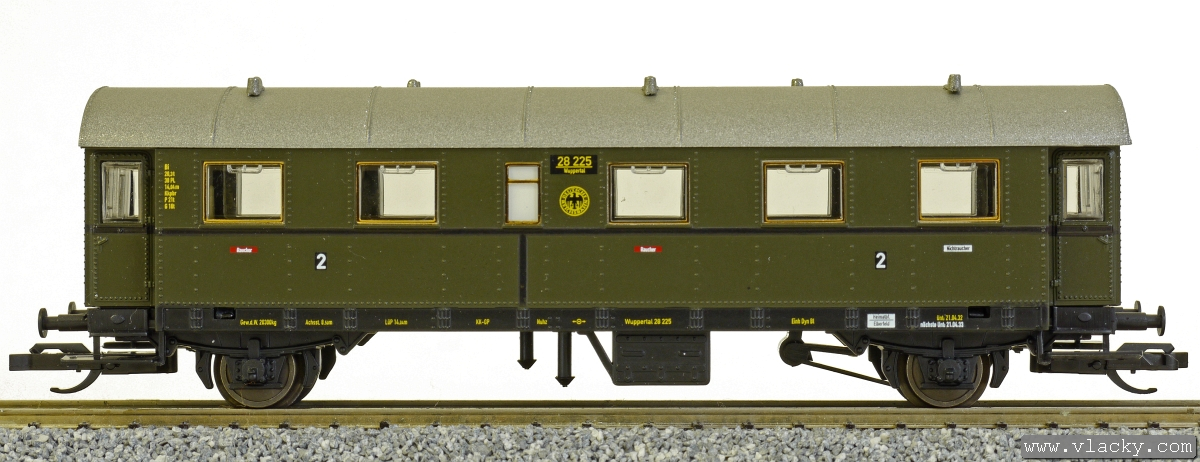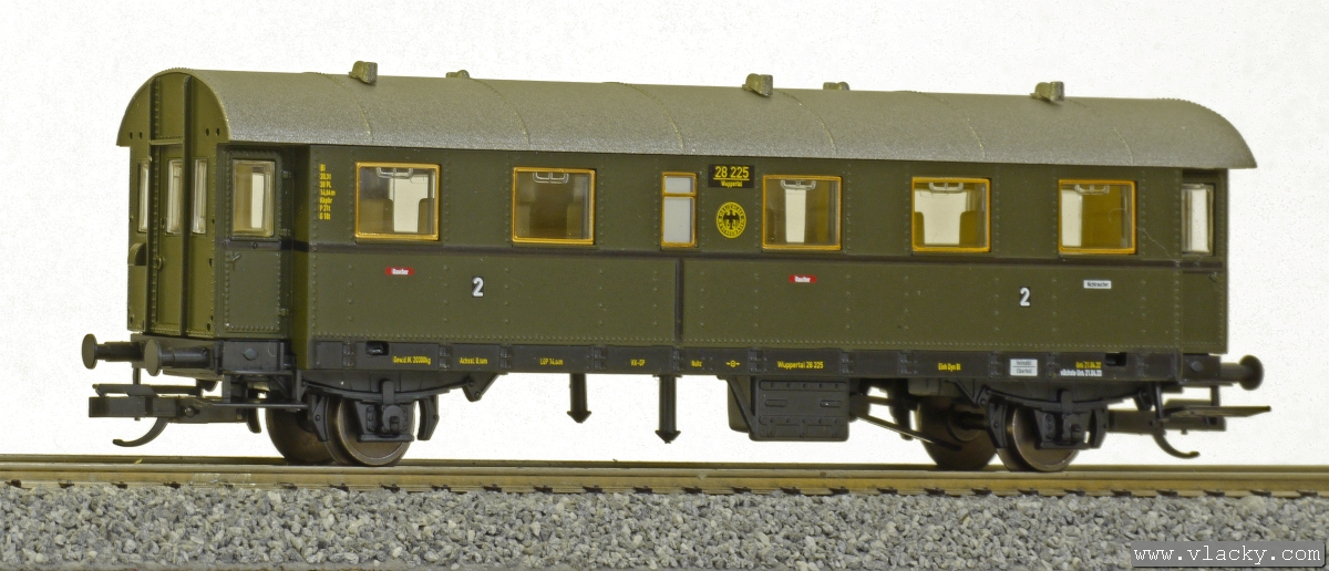| osobní vůz zelený s šedou střechou 2. tř. Bi29 |