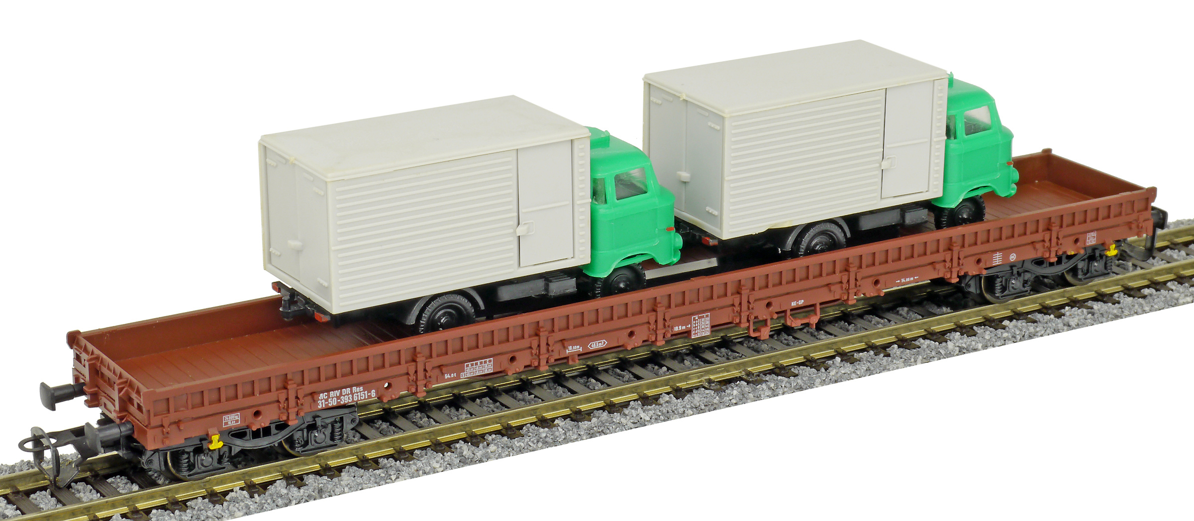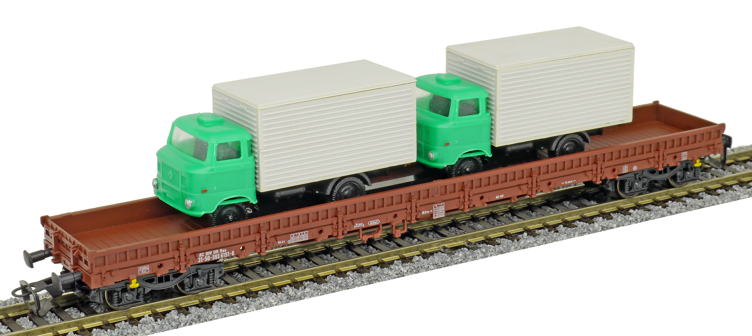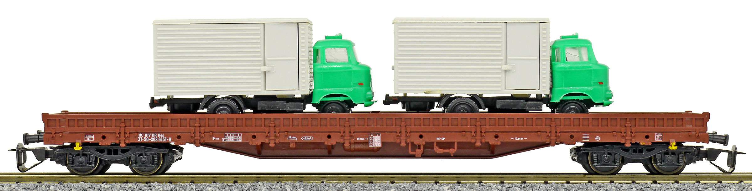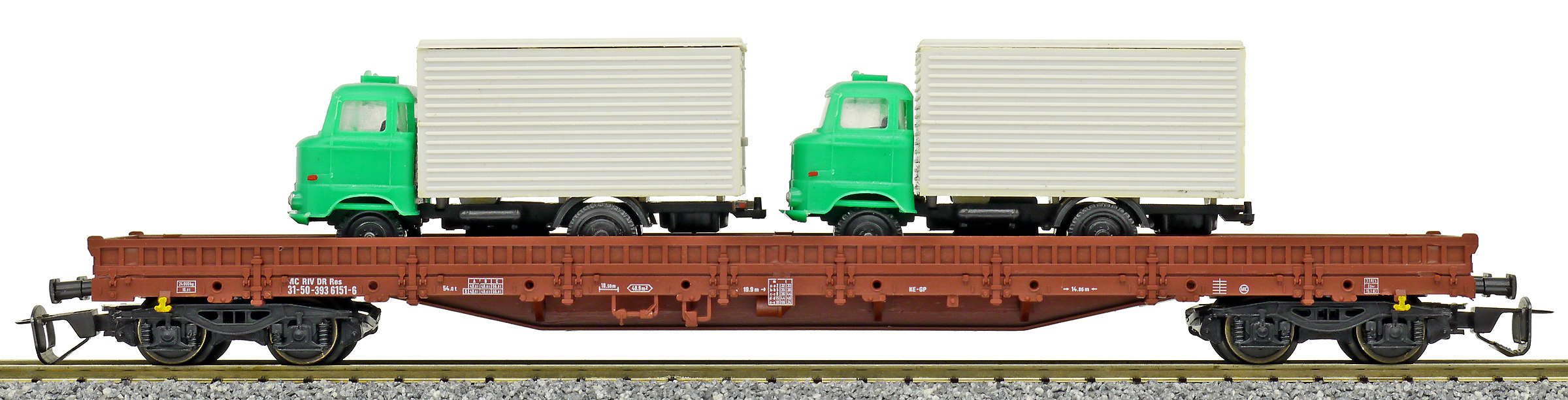 | • 31 50 393 6151-6 | → | nákladní, s podvozky, pevný rozchod, ve vlastnictví železniční správy, RIV, PPV |