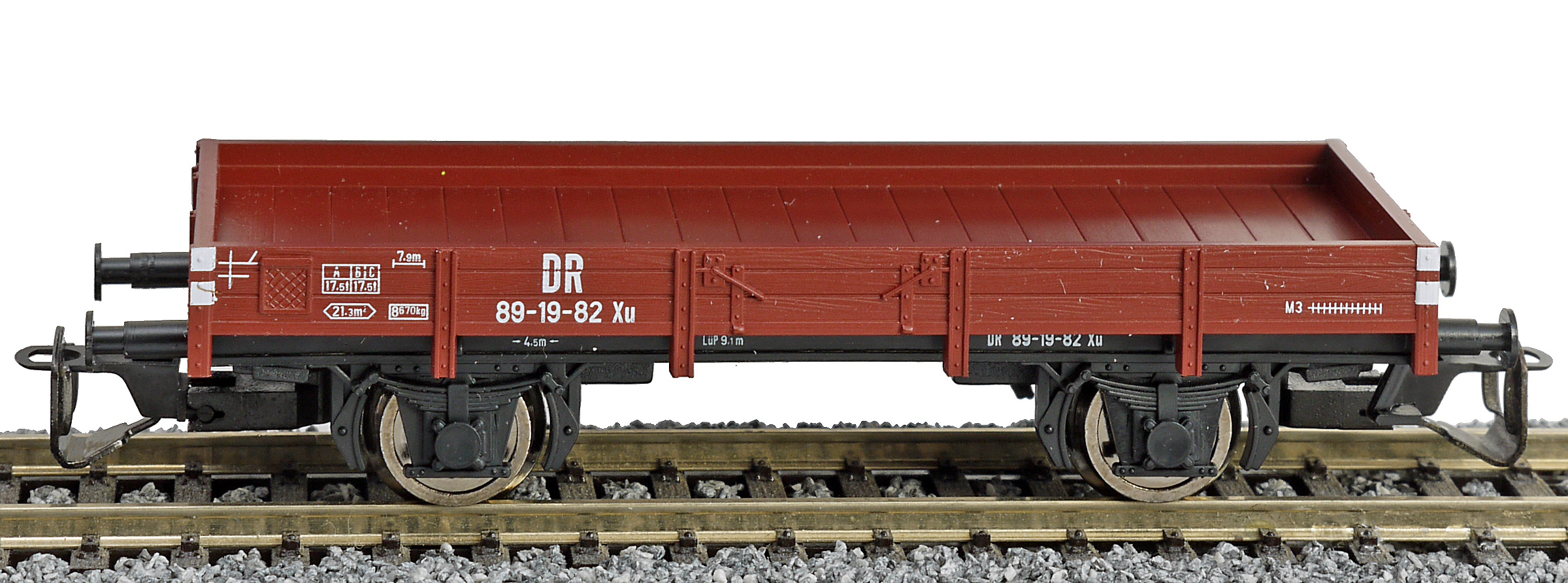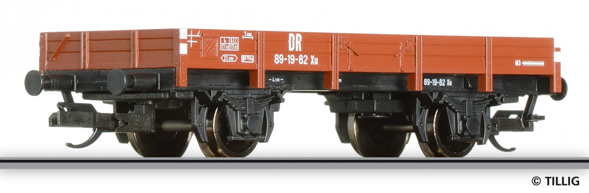 | nízkostěnný nákladní vůz červenohnědý s černým pojezdem |