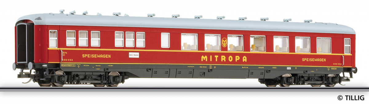 | jídelní vůz červený s šedou střechou „Mitropa“ |
