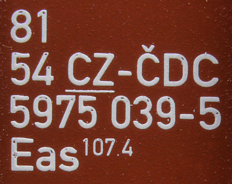 | • 81 54 5975 039-5 | → | nákladní, s podvozky, ve vlastnictví železniční správy, pro mezinárodní dopravu dle zvláštních umluv |