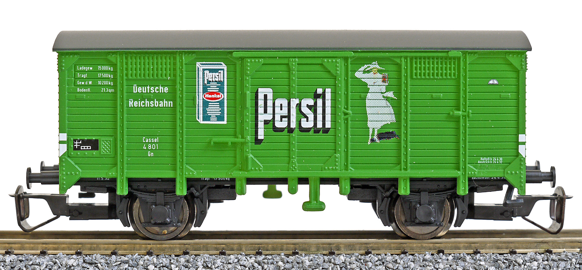 krytý nákladní vůz zelený s černou střechou „Persil“