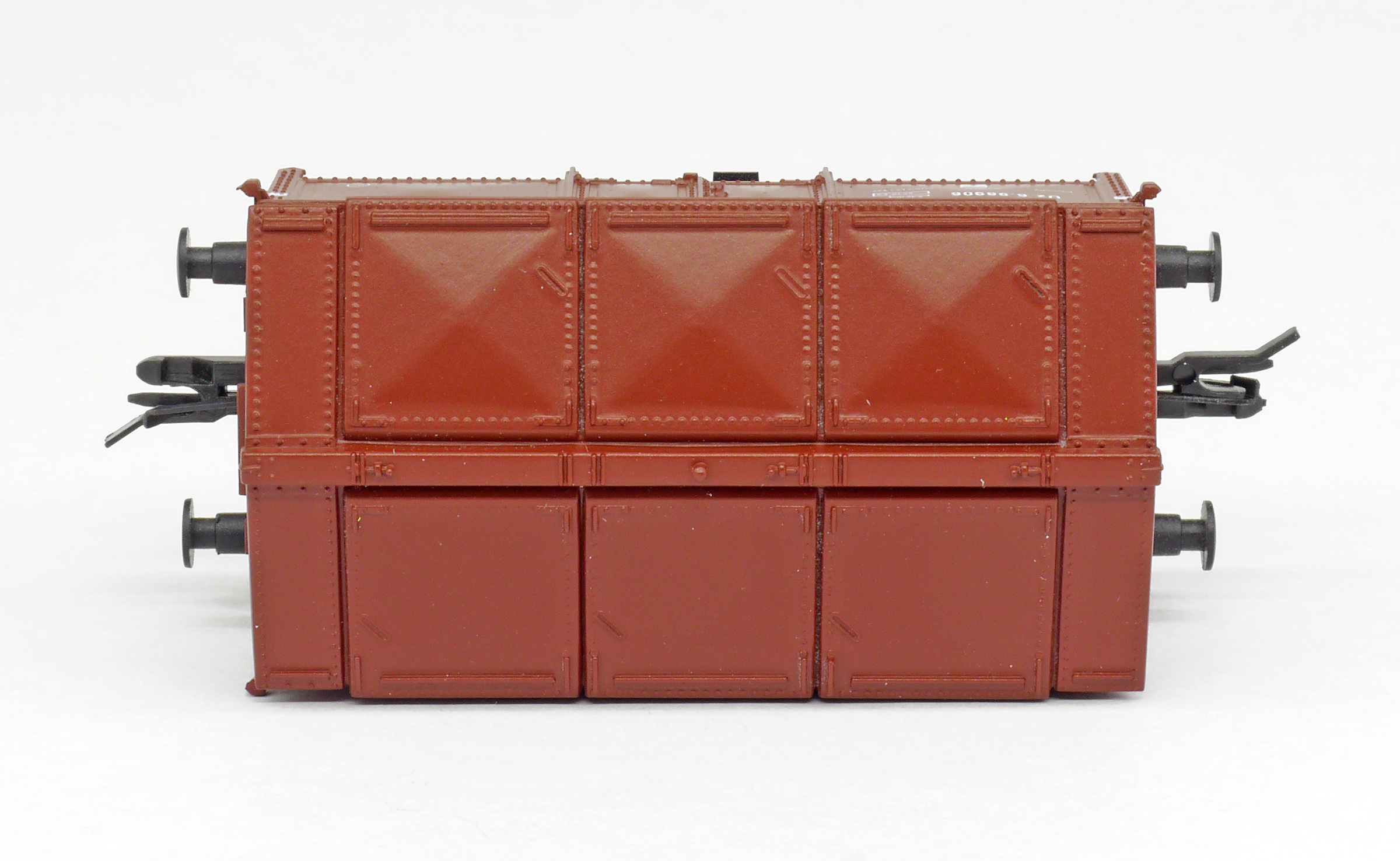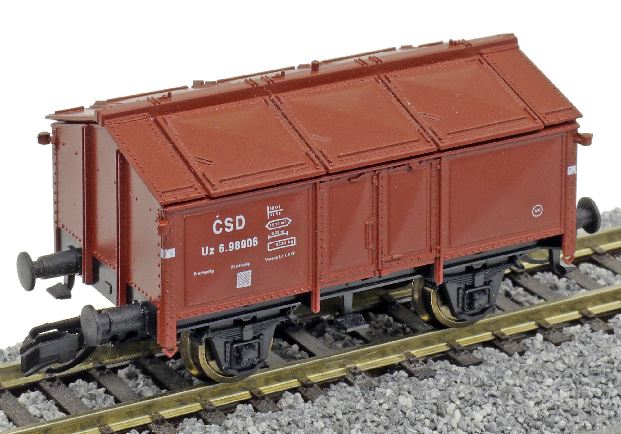 Popis   nákladní vůz červenohnědý s klapkami, černý pojezd