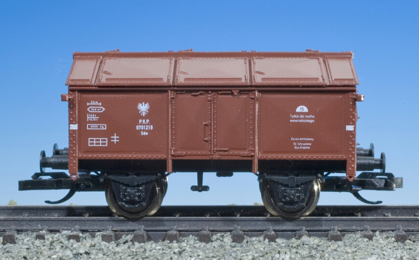 Popis   nákladní vůz červenohnědý s klapkami, černý pojezd