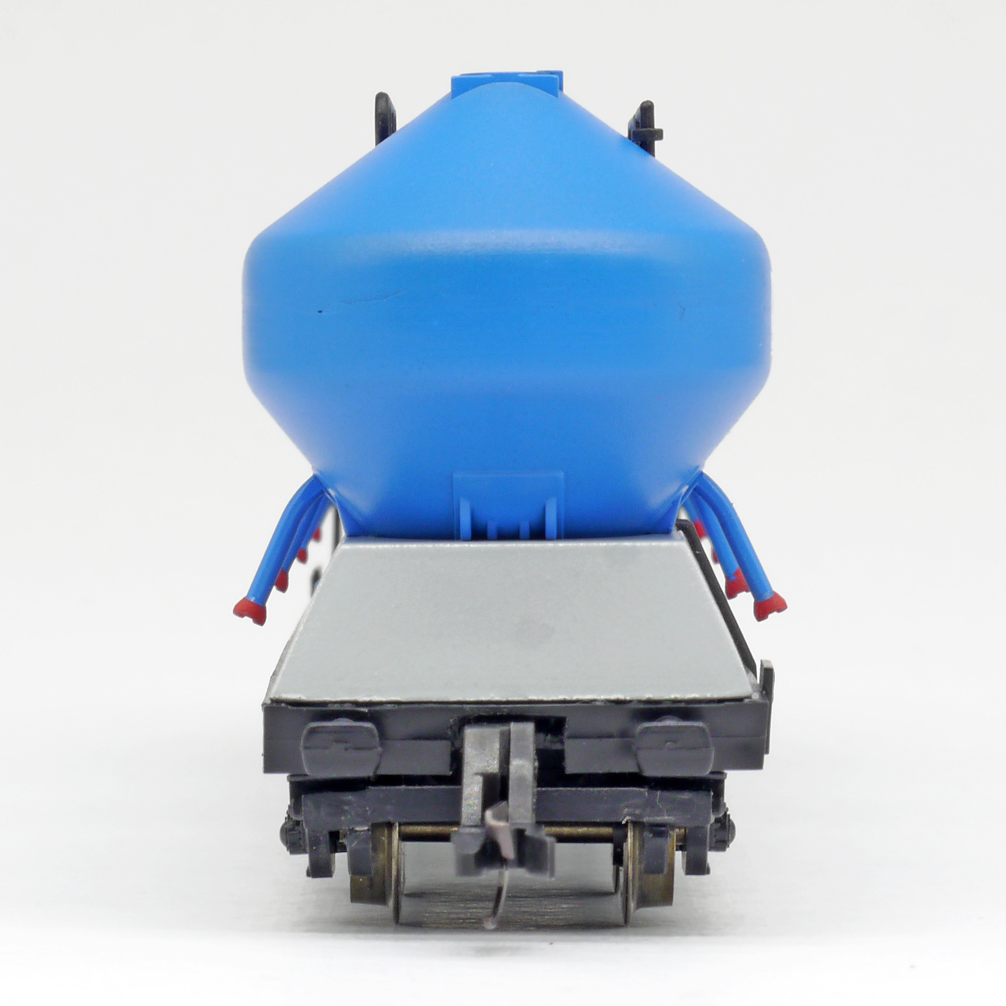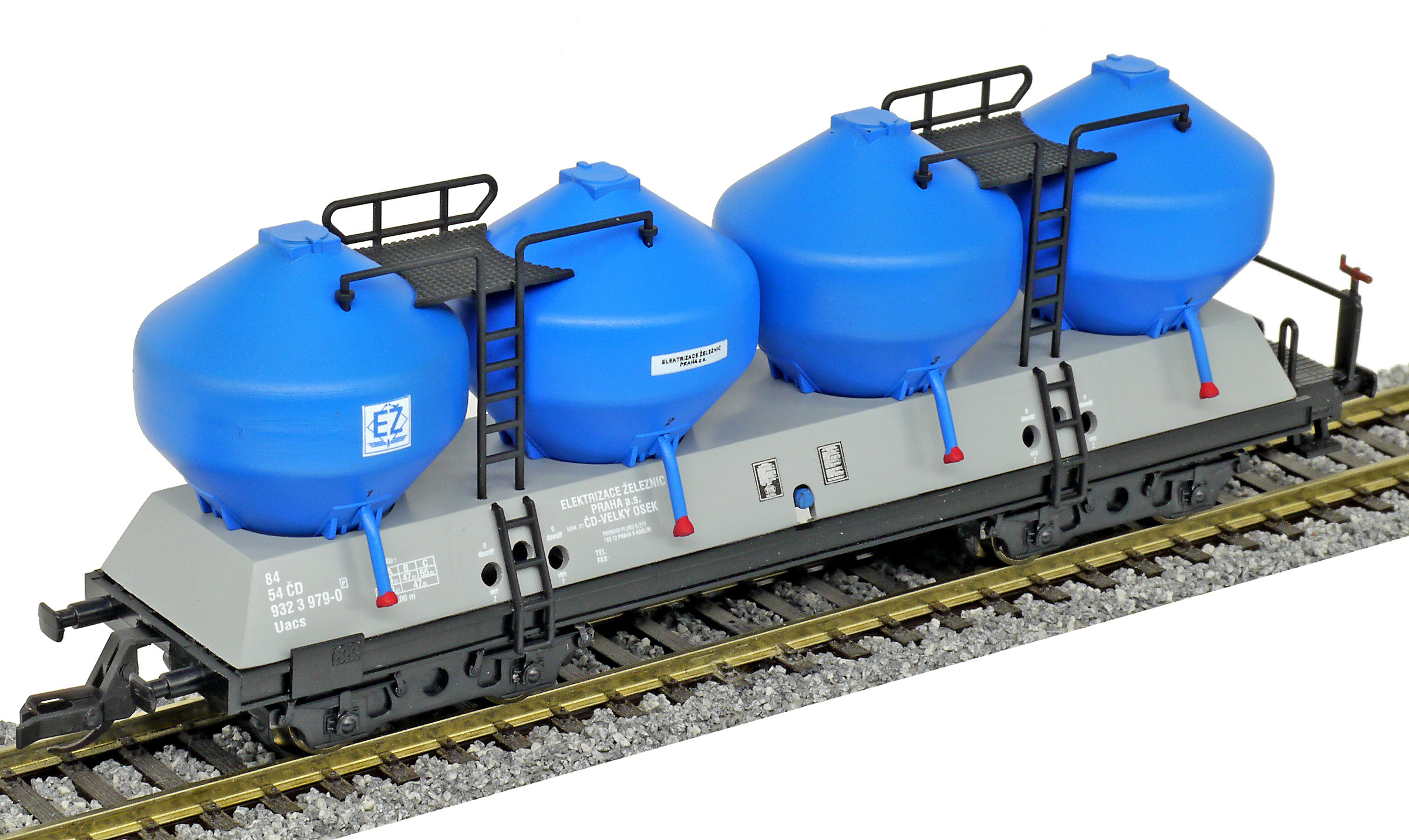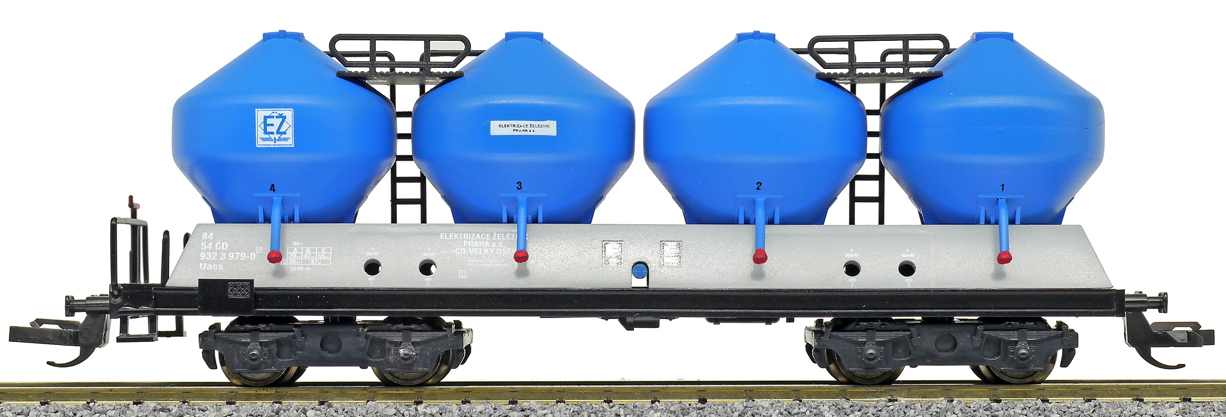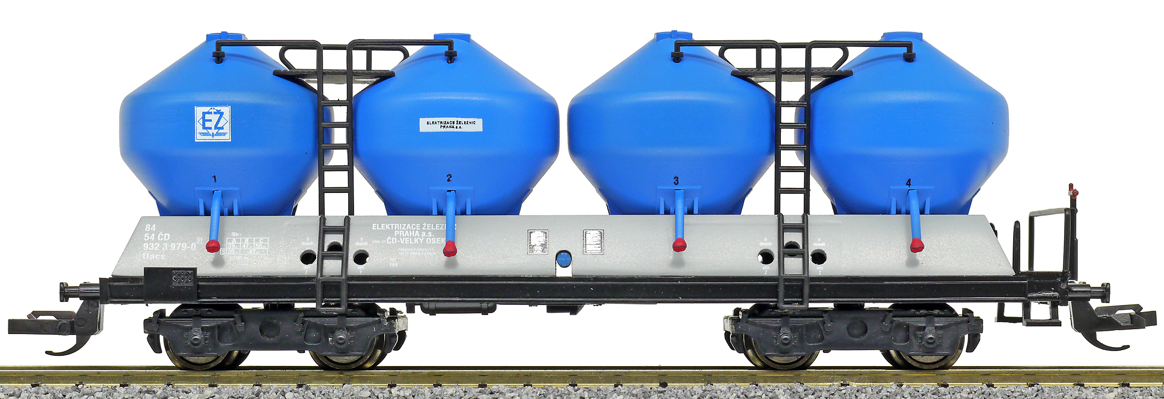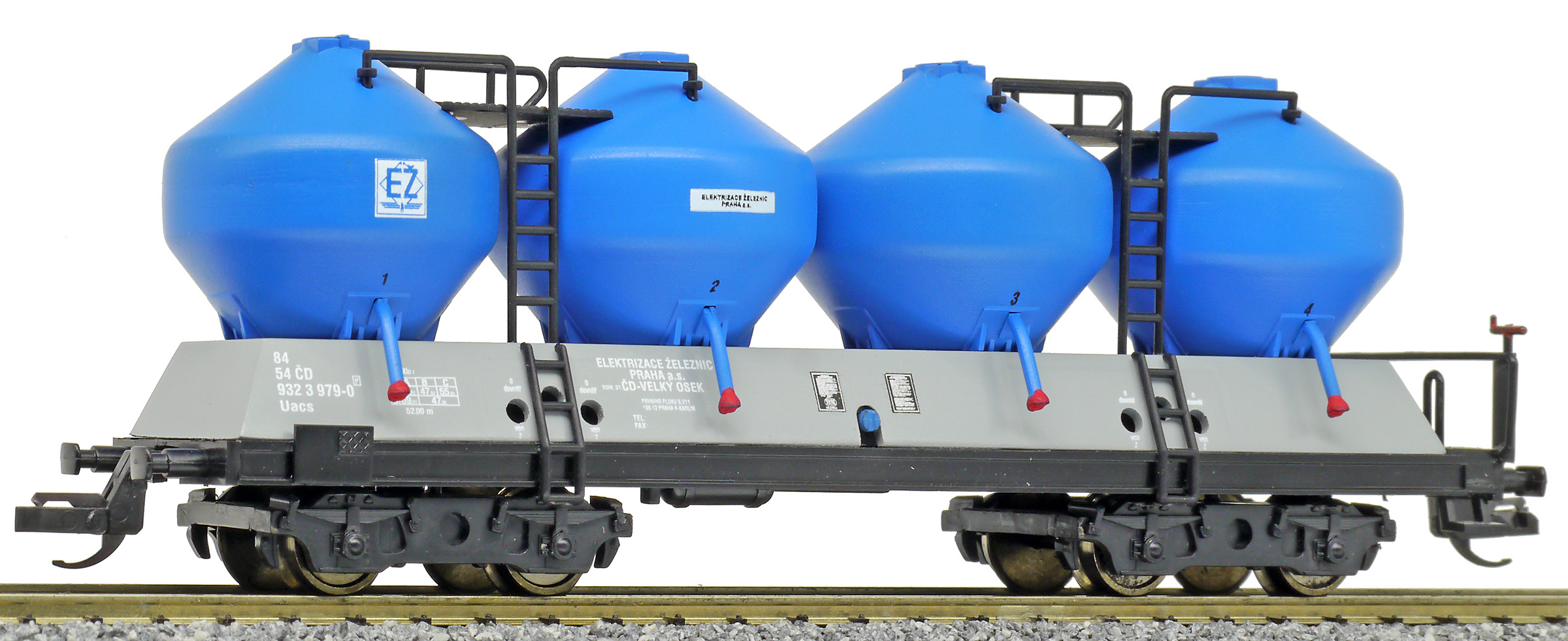 | samovýsypný nákladní vůz šedý s modrými nádobami „Elektrizace železnic“ |