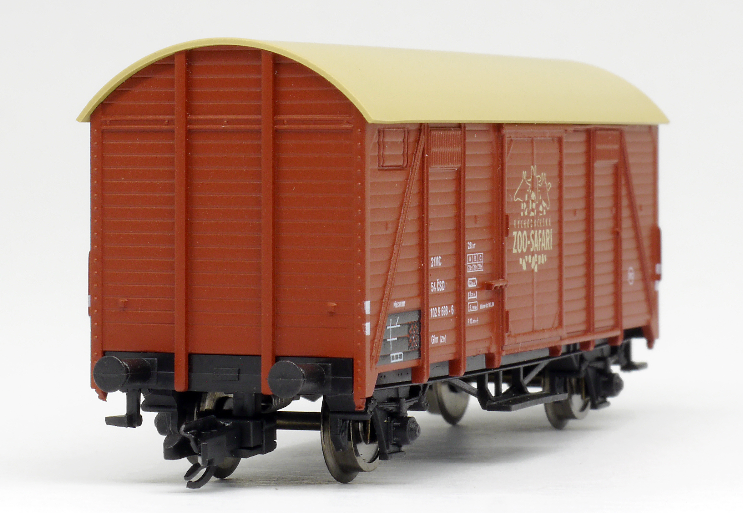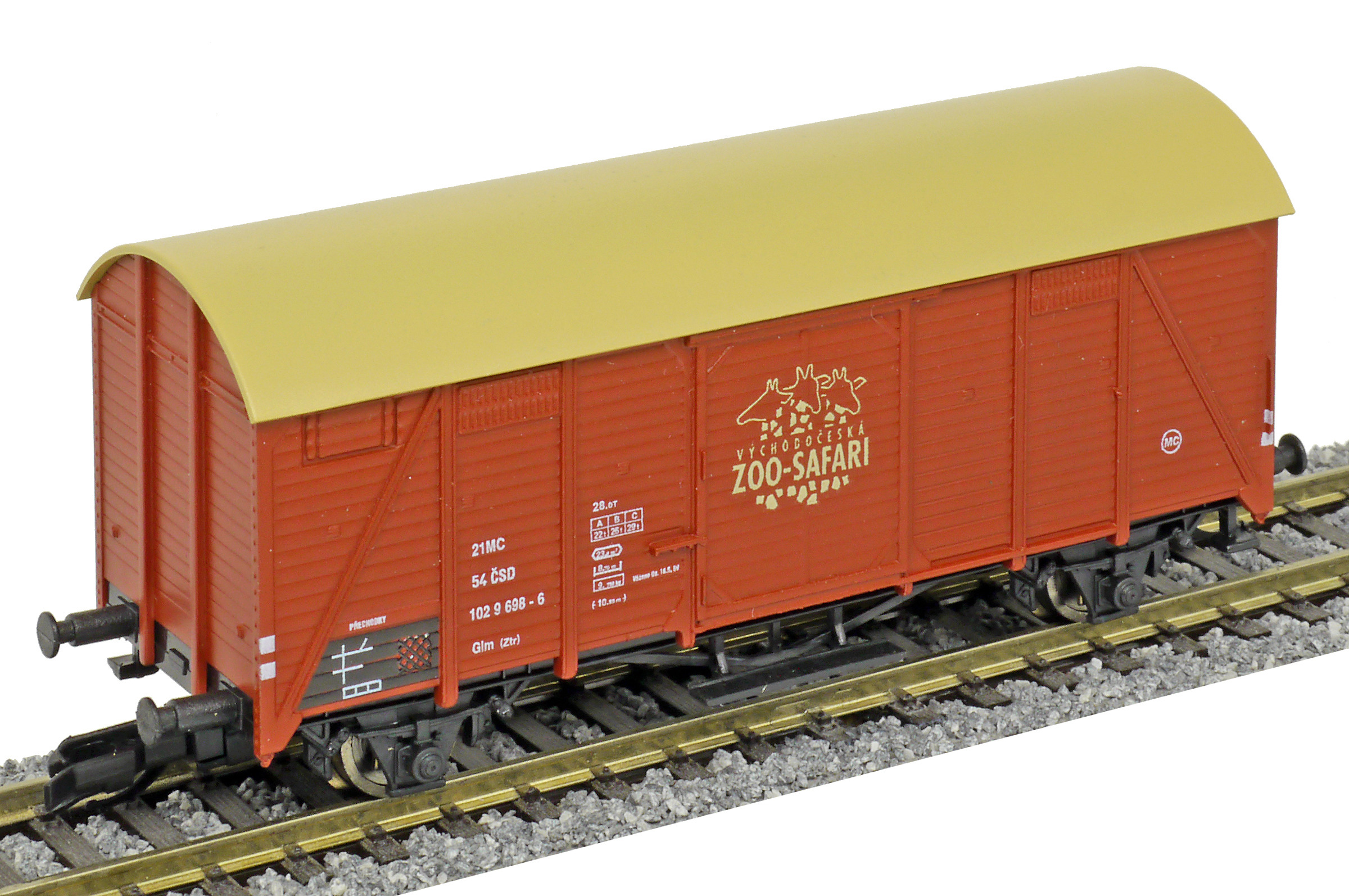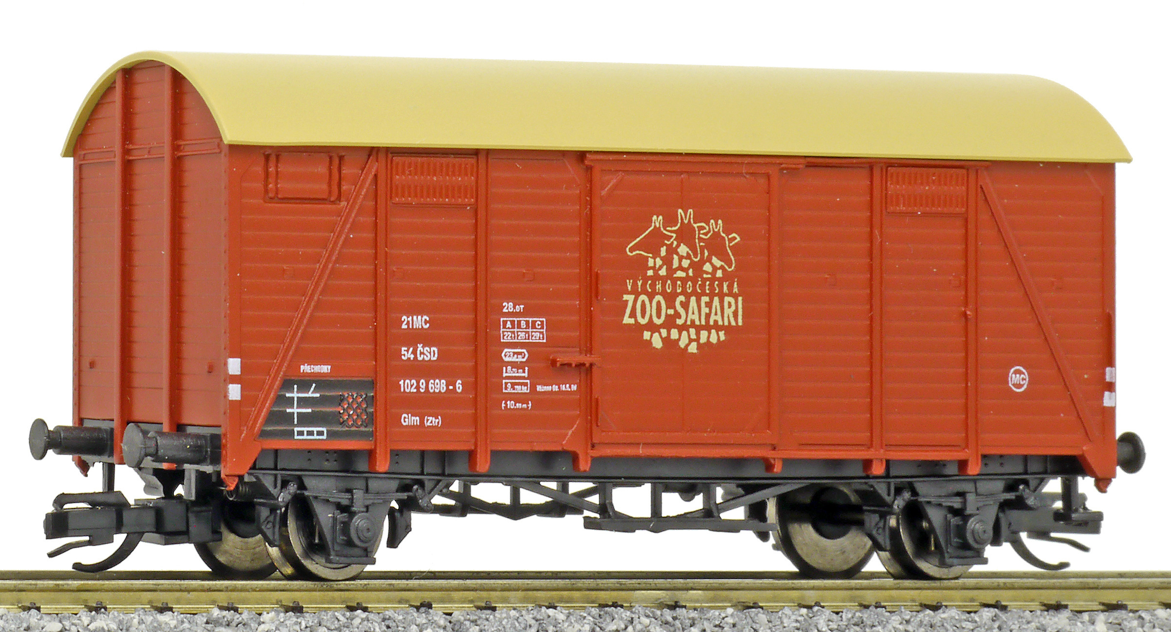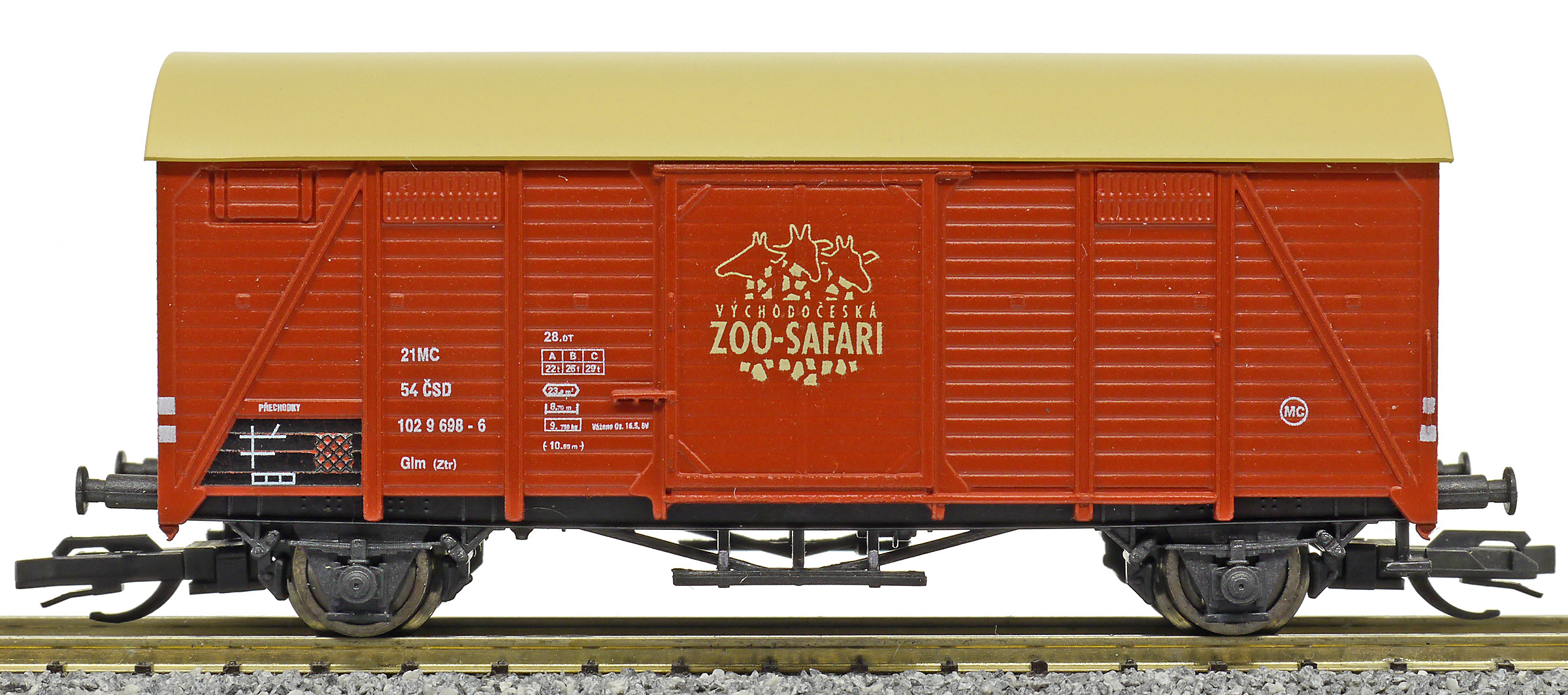 | krytý nákladní vůz červenohnědý s okrovou střechou „ZOO - Safari” |