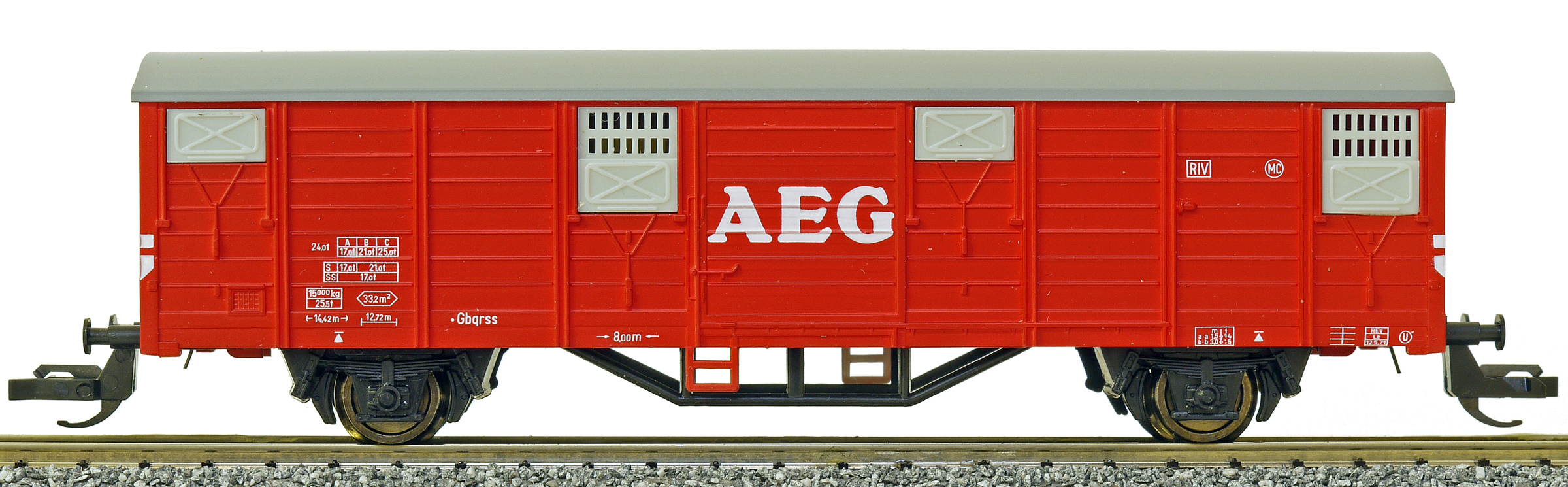 krytý nákladní vůz červený s šedou střechou „AEG“