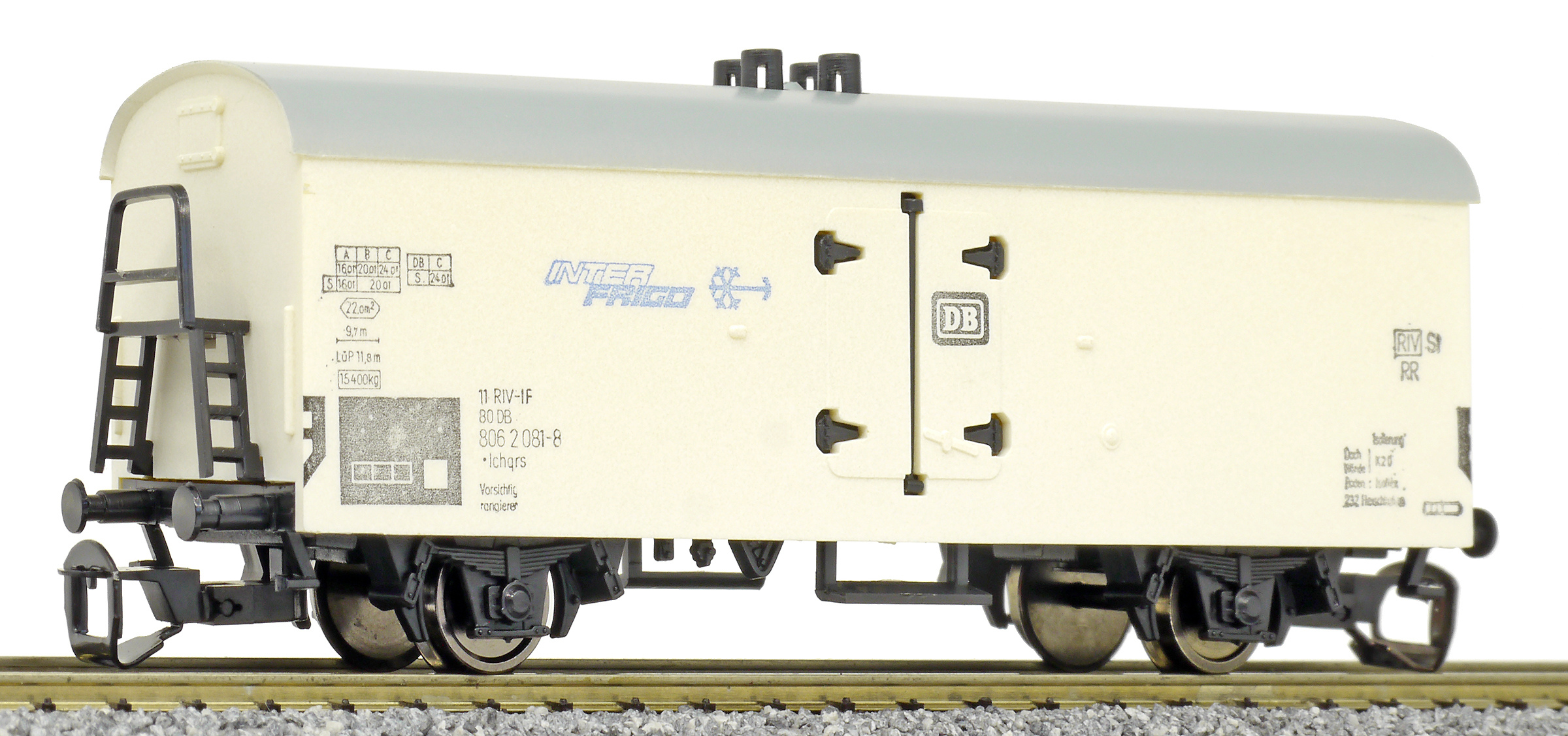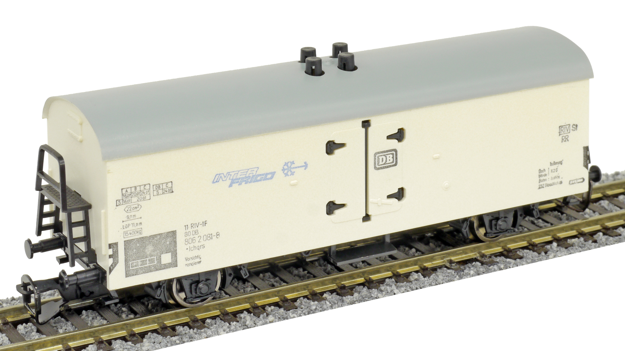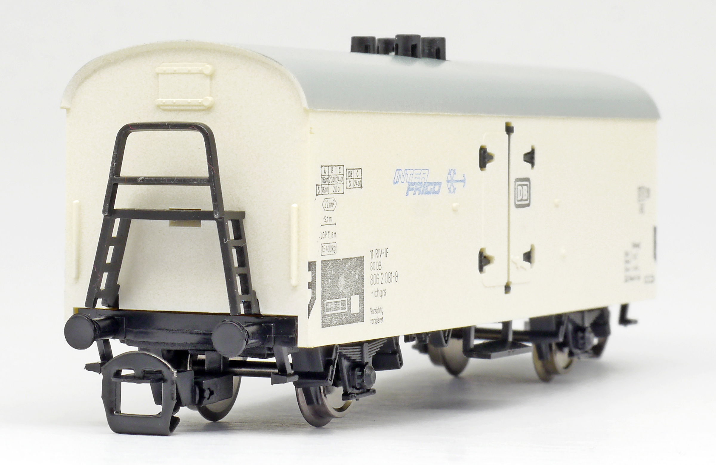 | nákladní chladící vůz bílý s šedou střechou „INTERFRIGO“ |