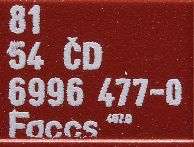 • 81 54 6996 477-0nákladní, s podvozky, ve vlastnictví železniční správy, pro mezinárodní dopravu dle zvláštních umluv