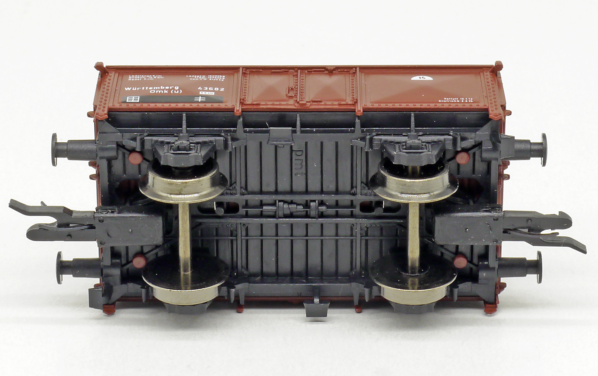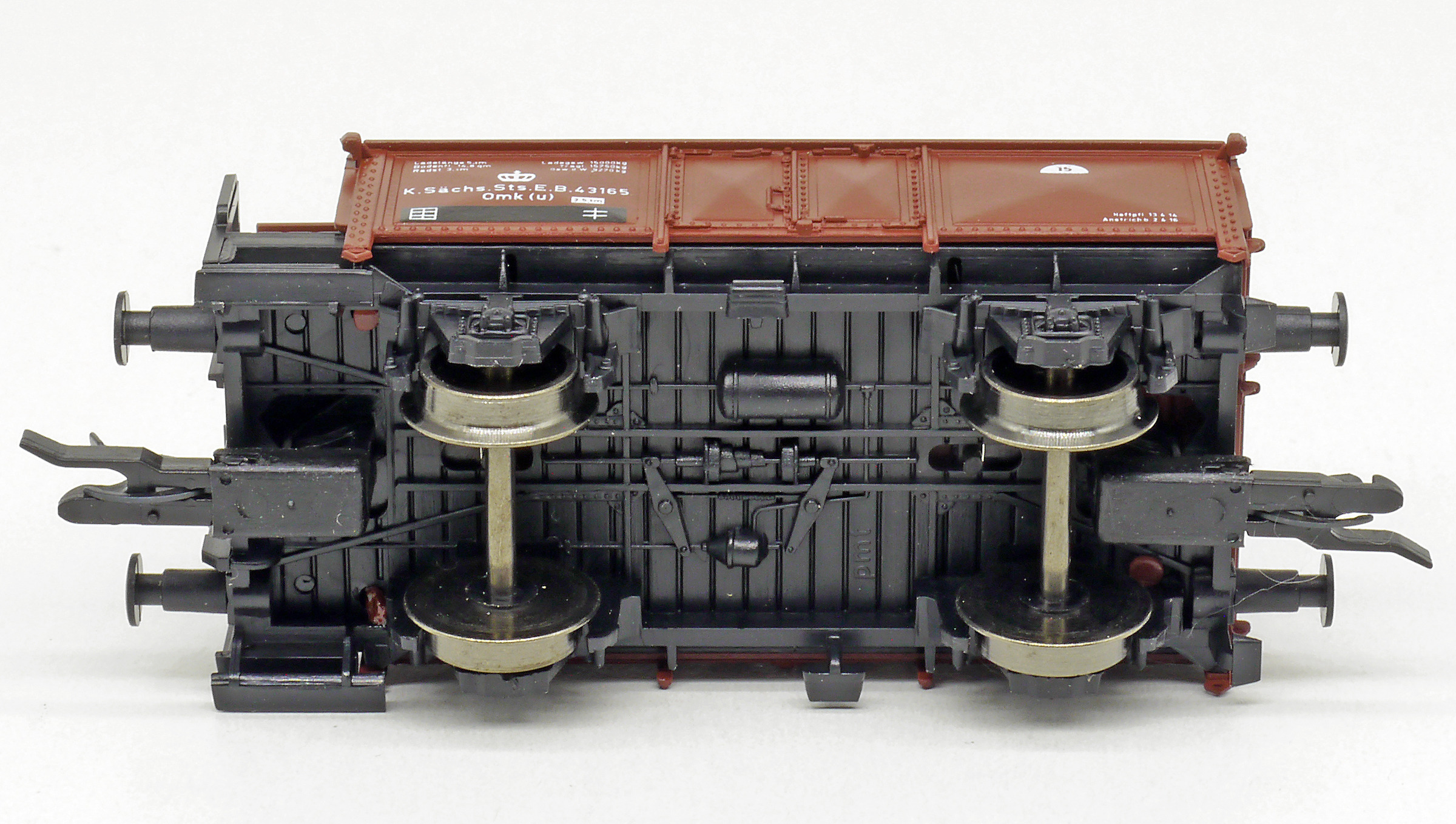 měřítko 1:120 - rozchod kolejí 12 mm kinematika krátkého spřáhla (KKK) podle normy NEM 358 61,5 mm - celková délka modelu přes nárazníky