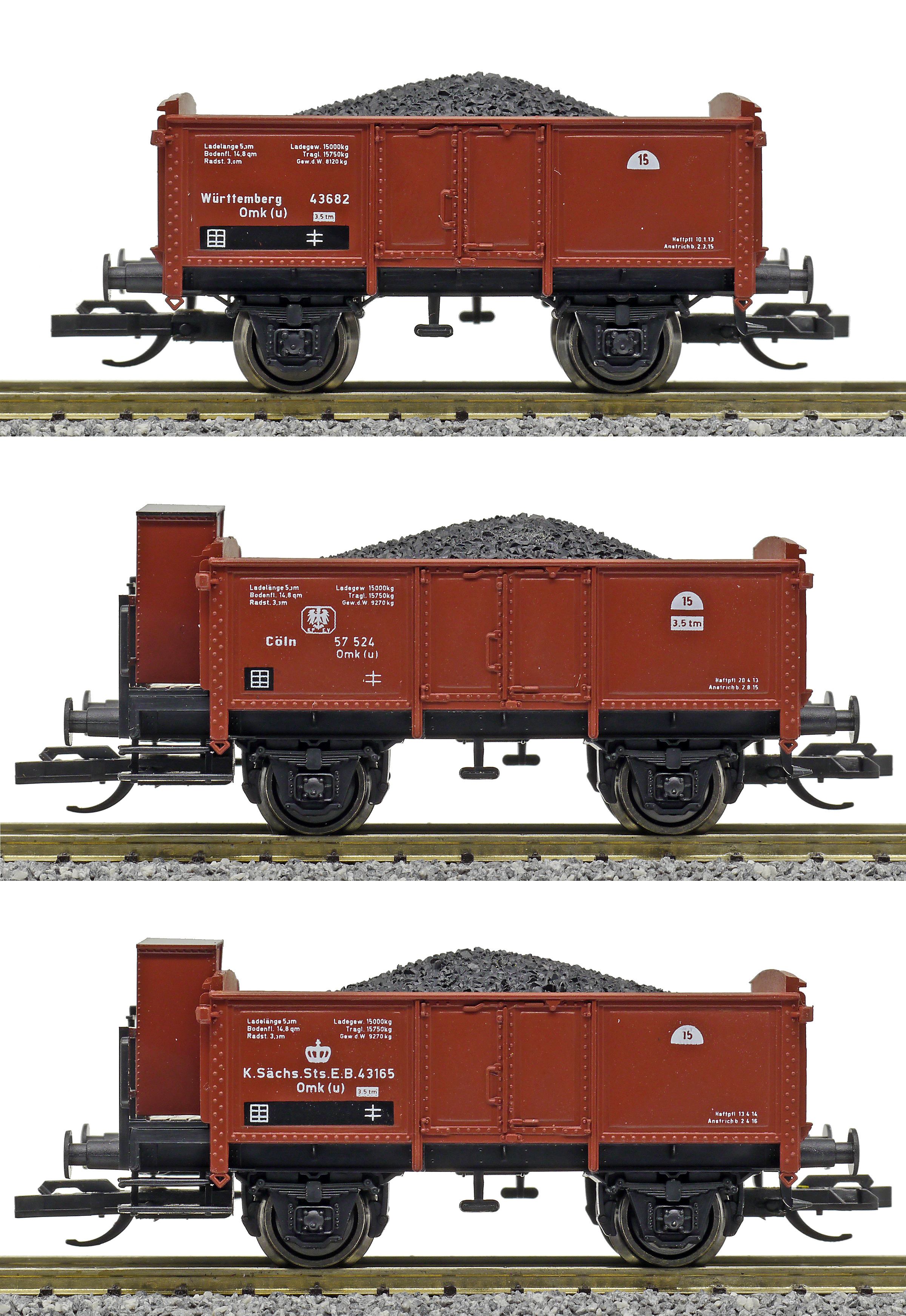| otevřený nákladní vůz červenohnědý ložený uhlím |