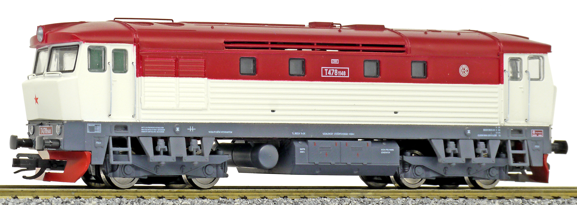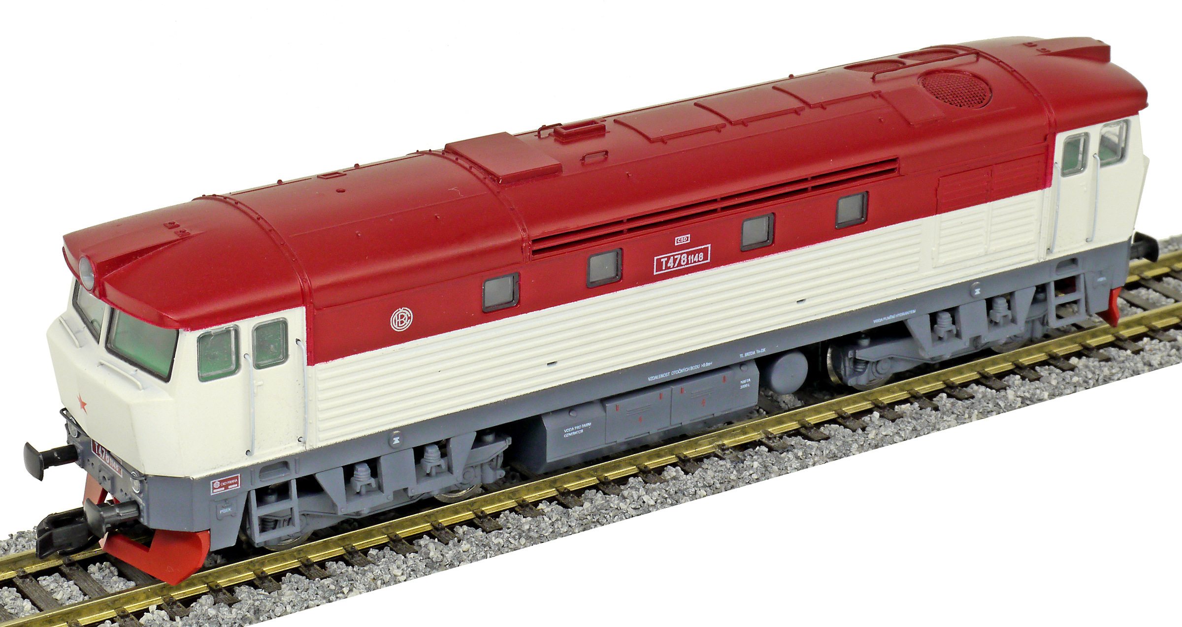 Popis   dieselová lokomotiva bílá-červená, šedý rám a podvozky
