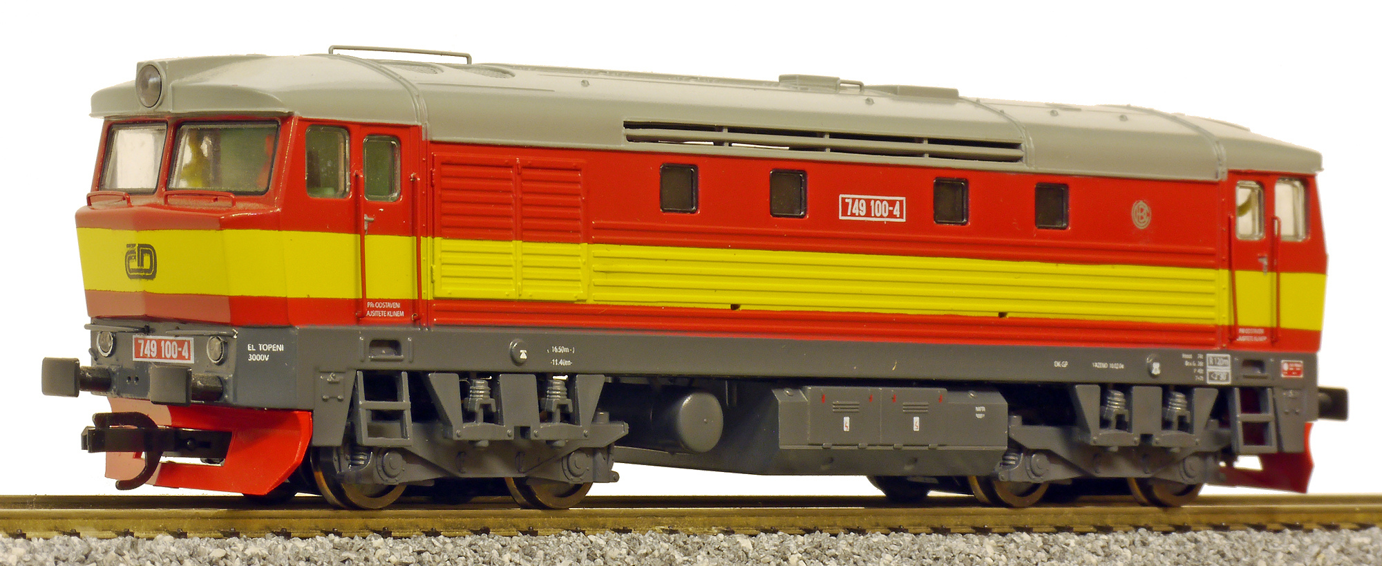 Popis   dieselová lokomotiva červená se žlutám výstražným pruhem