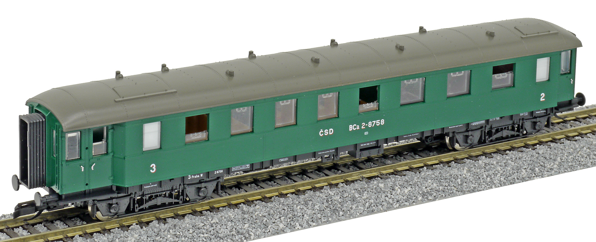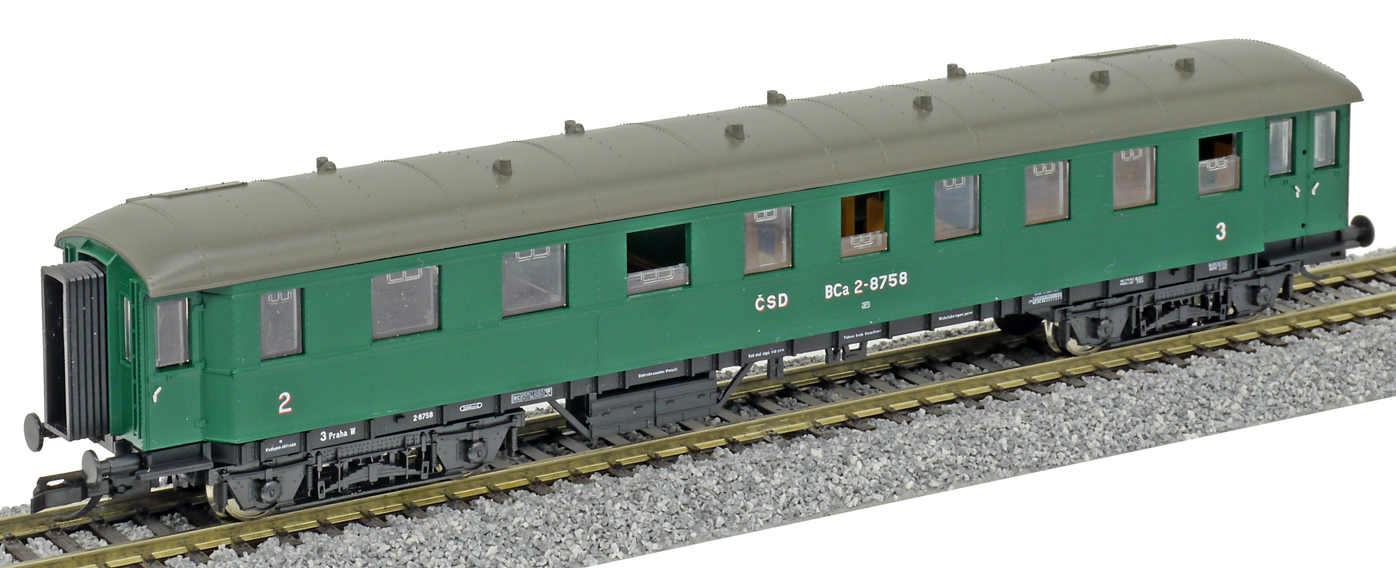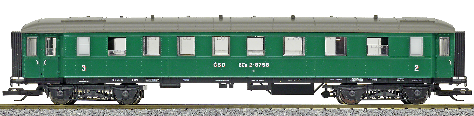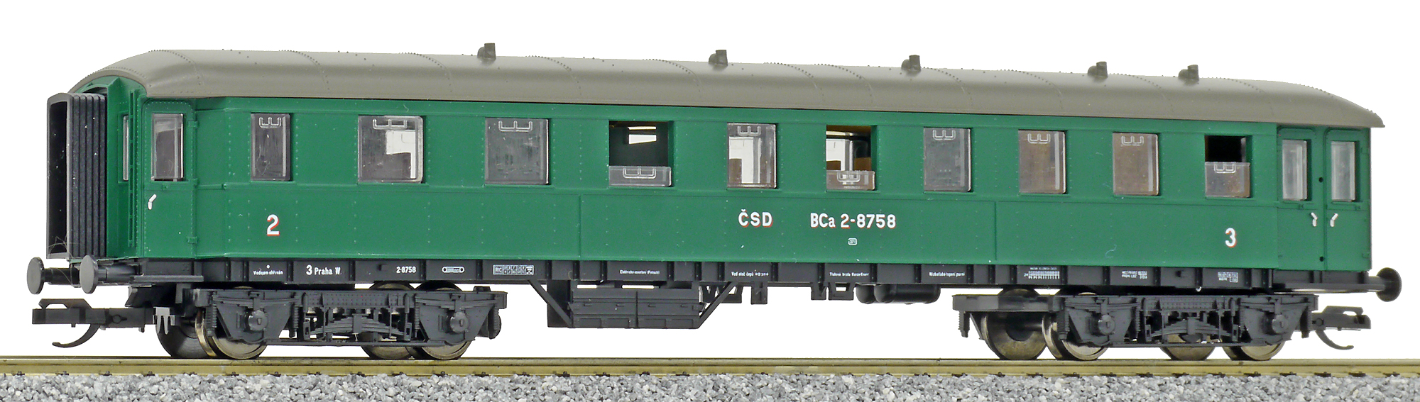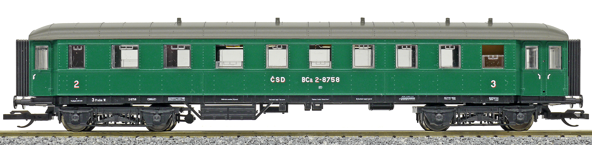 | osobní vůz zelený s šedou střechou 2./3. tř. |