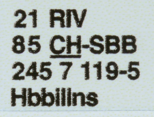 | • 21 85 245 7 119-5 | → | CH - Švýcarsko |