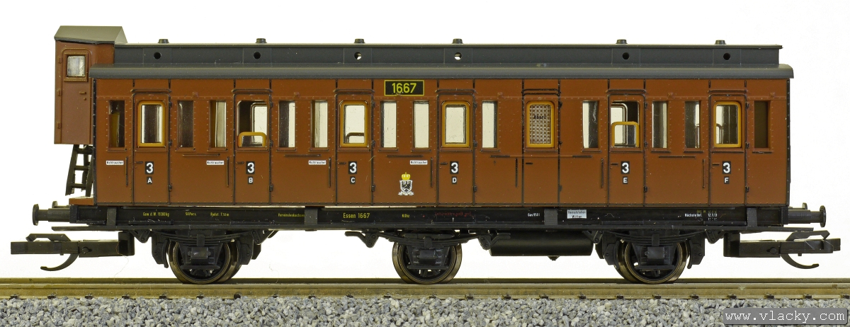 Popis   oddílový osobní vůz červenohnědý s černou střechou a brzdařskou budkou 3. tř.