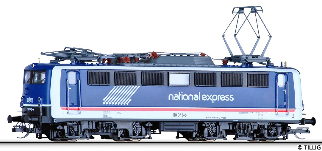 | elektrická lokomotiva modrá s bílým lemováním „national express“ |