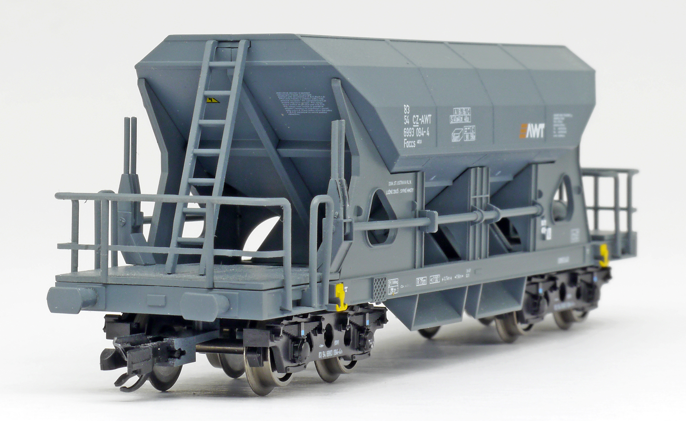 | nákladní samovýsypný vůz šedý s logem „AWT“ |