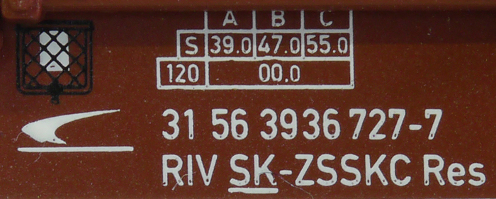 | • 31 56 3936 727-7 | → | nákladní, s podvozky, pevný rozchod, ve vlastnictví železniční správy, RIV, PPV |