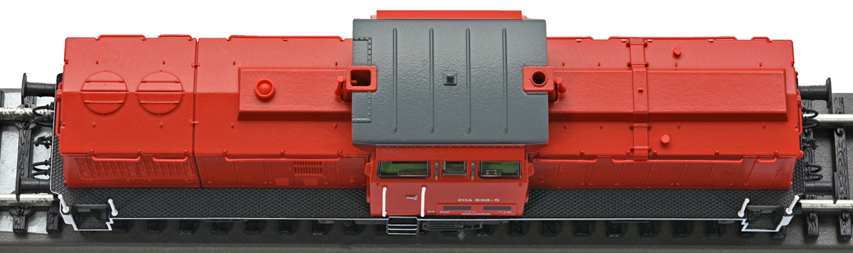 Popis   dieselová lokomotiva červená s černým rámem a pojezdem