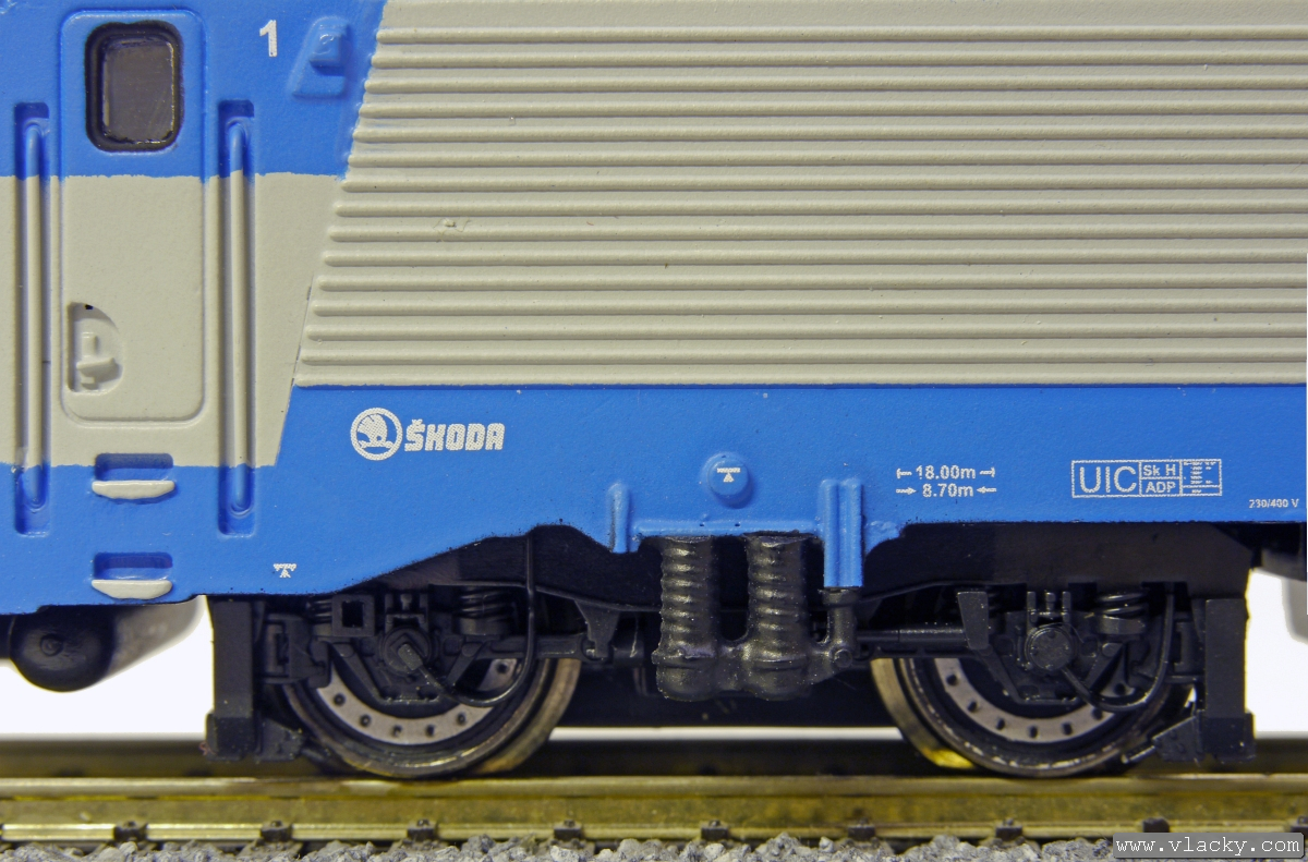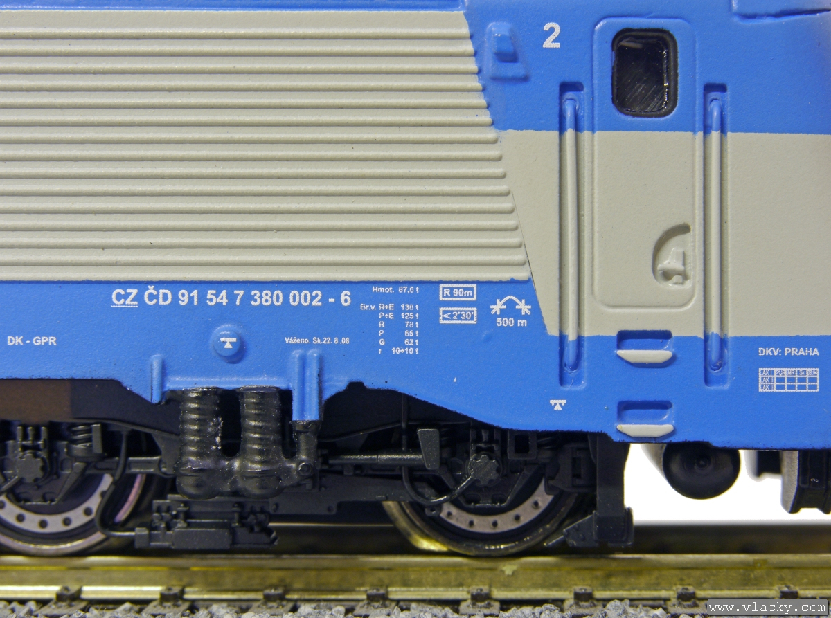 měřítko 1:120 - rozchod kolejí 12 mm osvětlení - 3 reflektory vpředu, 2 světla vzadu, přepínatelné podle směru jízdy 4 hnané nápravy 1 bandážovaná náprava kinematika krátkého spřáhla (KKK) podle normy NEM 358 digitální rozhraní podle NEM 651 s konektorem 6pin instalován lokomotivní digitální dekodér (DCC) 158 mm - celková délka modelu přes nárazníky 4 - celkový počet náprav nebo rozložení náprav