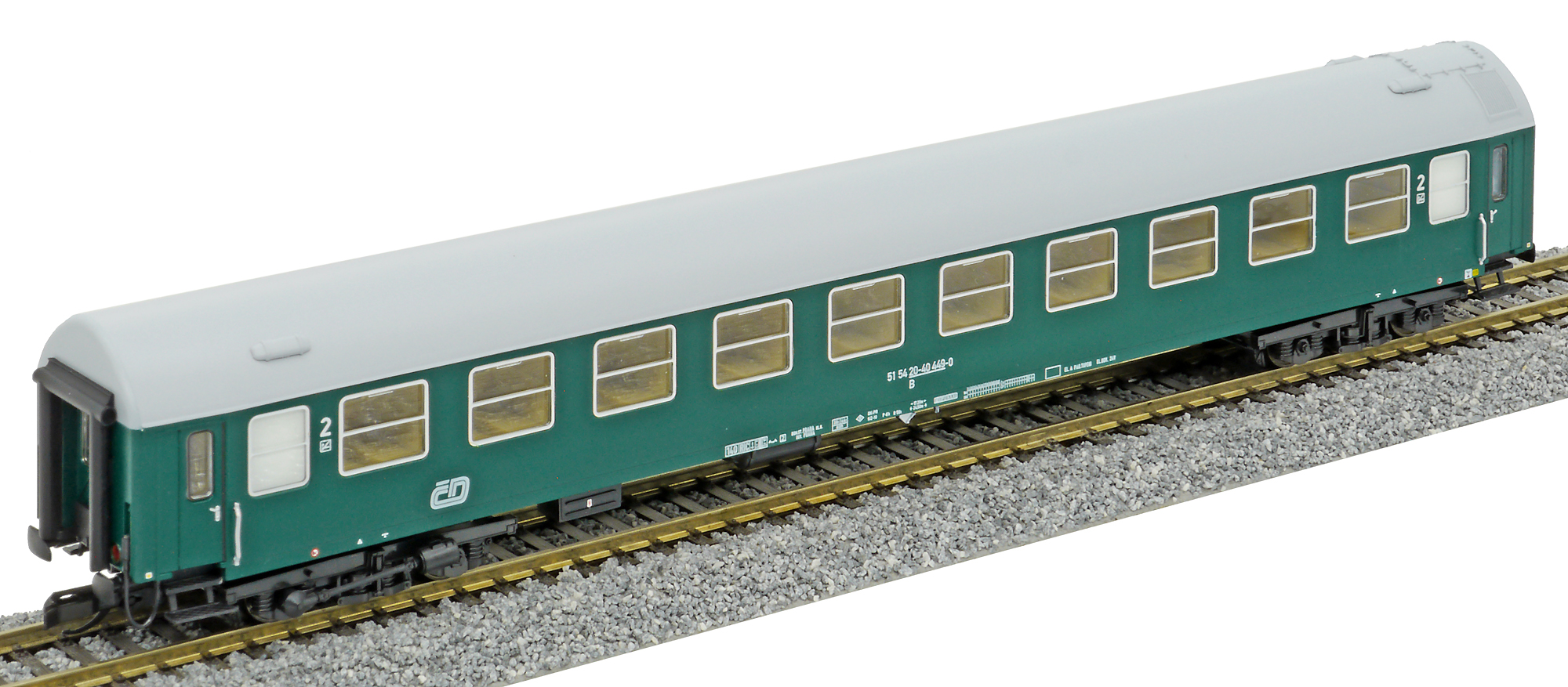 | rychlíkový vůz zelený s šedou střechou 2. tř. |