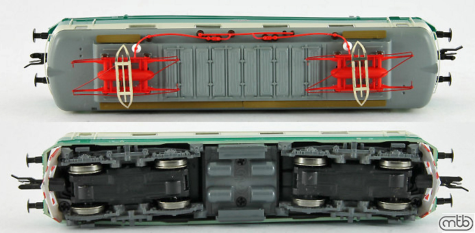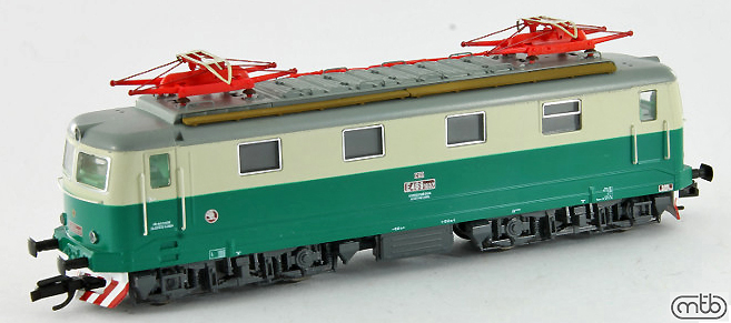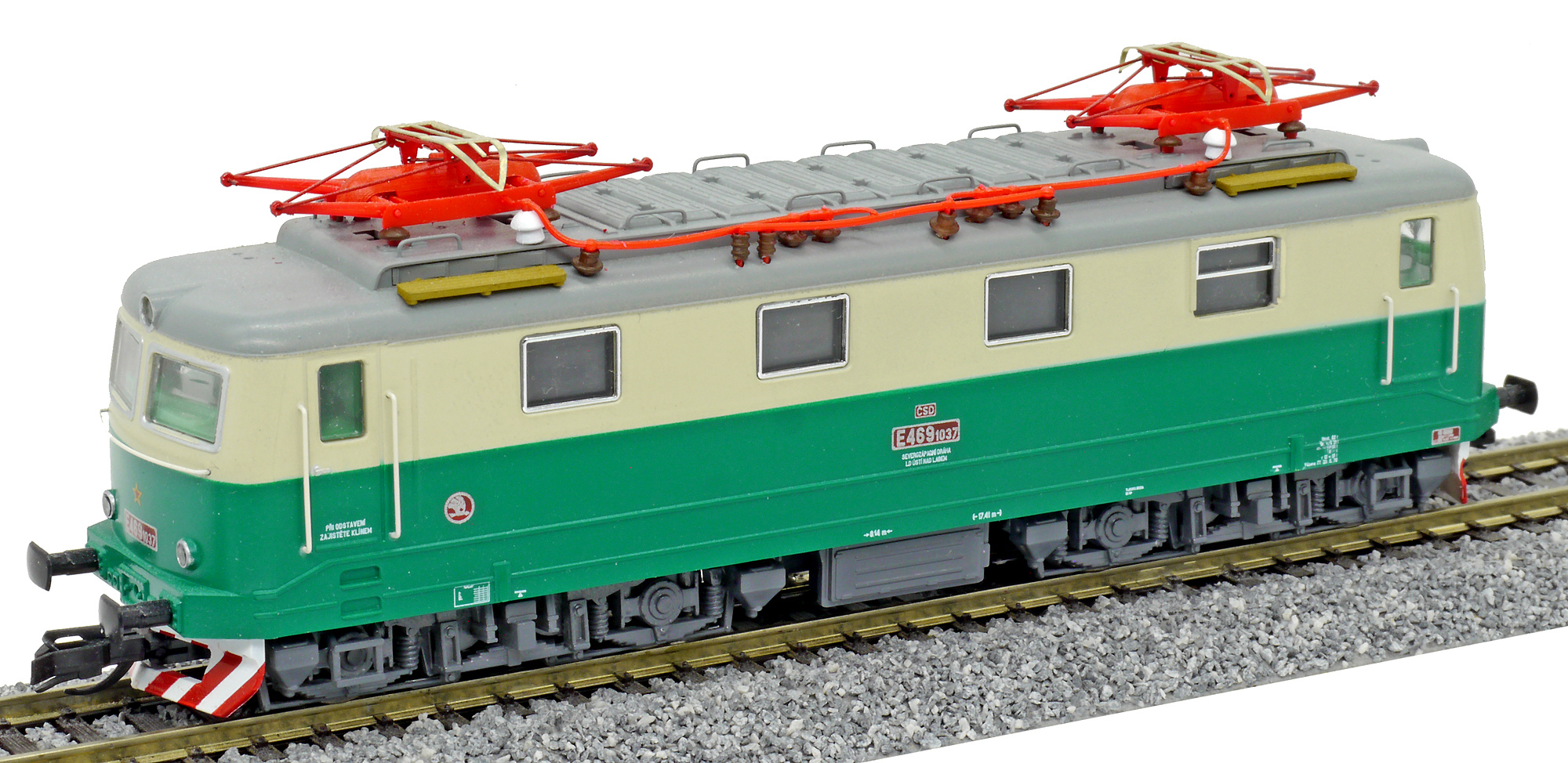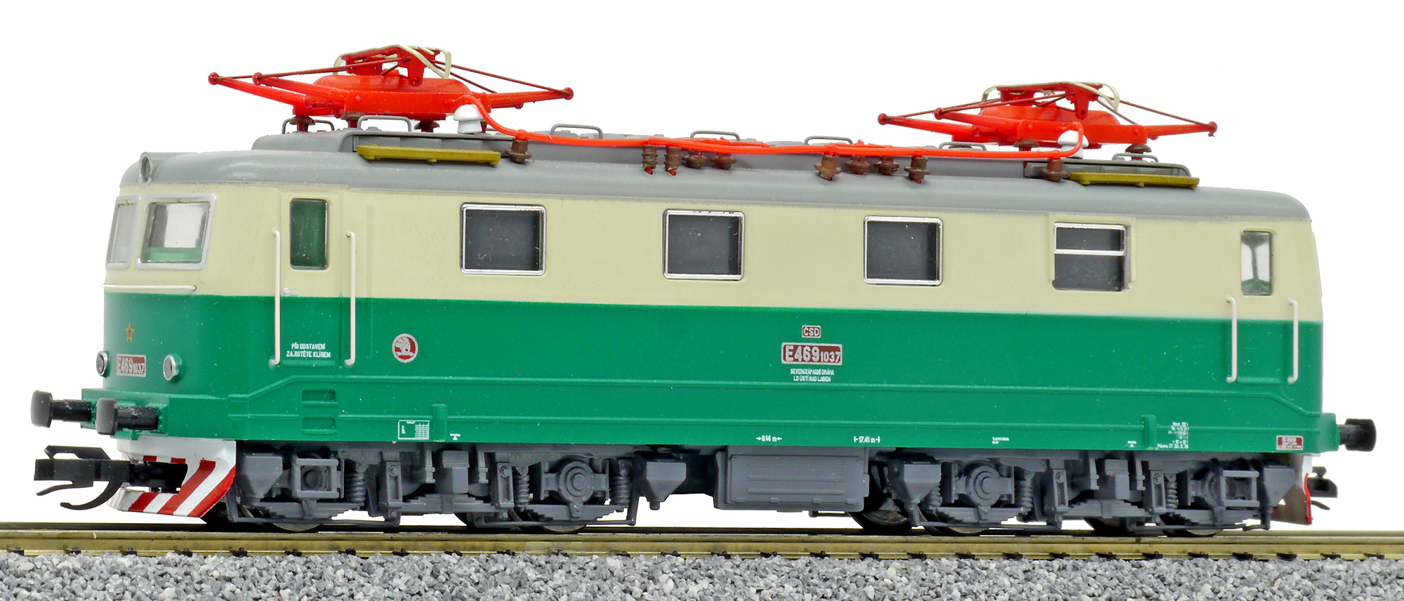 Popis   elektrická lokomotiva zelená-slonová kost s šedou střechou