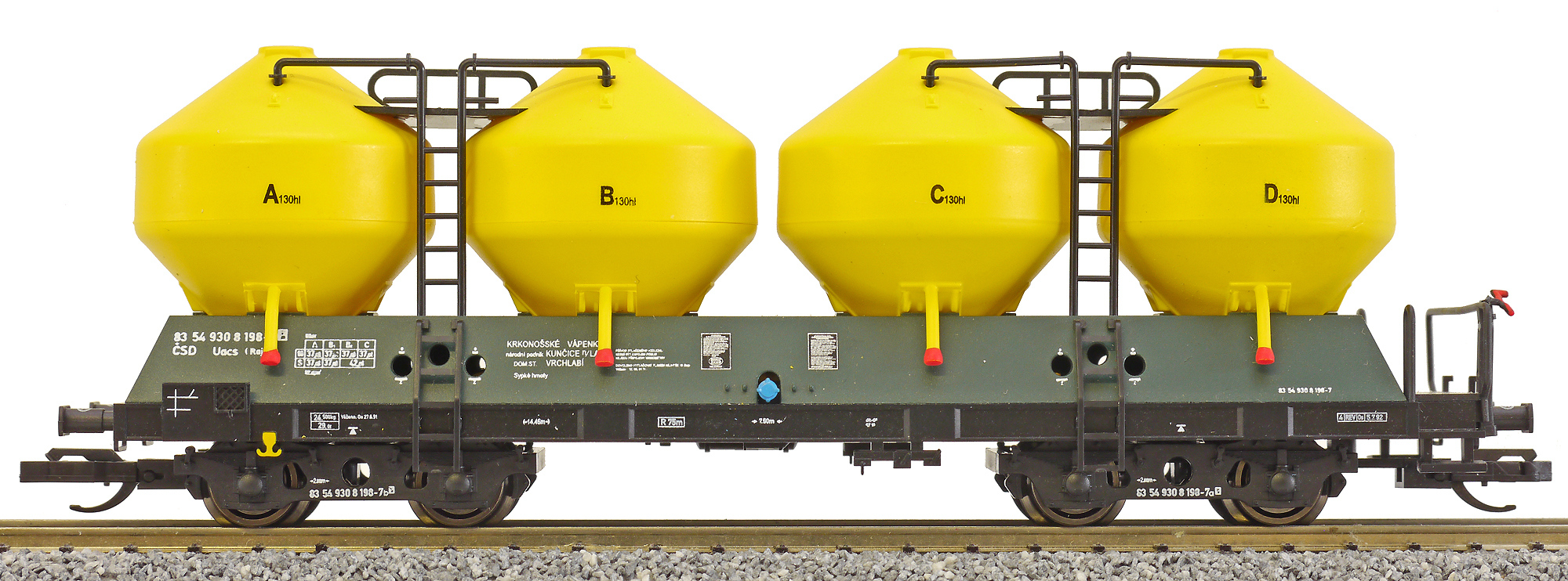 | • 83 54 930 8 198-7 | → | nákladní, s podvozky, soukromý vůz, pro mezinárodní dopravu dle zvláštních úmluv |