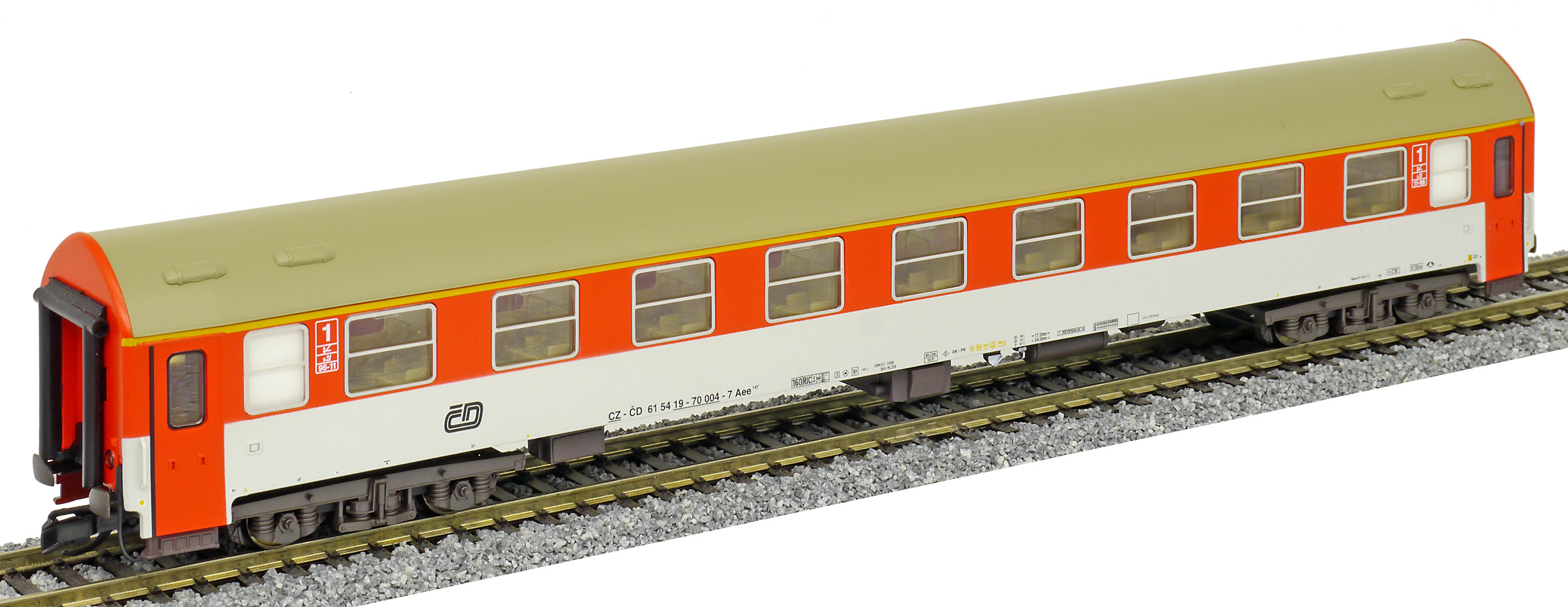 | rychlíkový vůz červený-bílý s šedou střechou 1. tř. |
