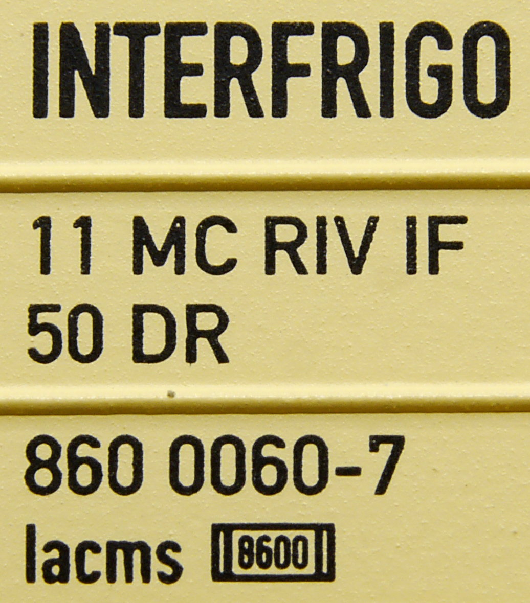 | • Iacms [8600] | - | vůz s regulovanou teplotou, chladící vůz s tepelnou izolací třídy IN, s výměnou vzduchu pomocí větračů, s podlahovým roštem a schránami na led (3,5 m3 nebo více) |