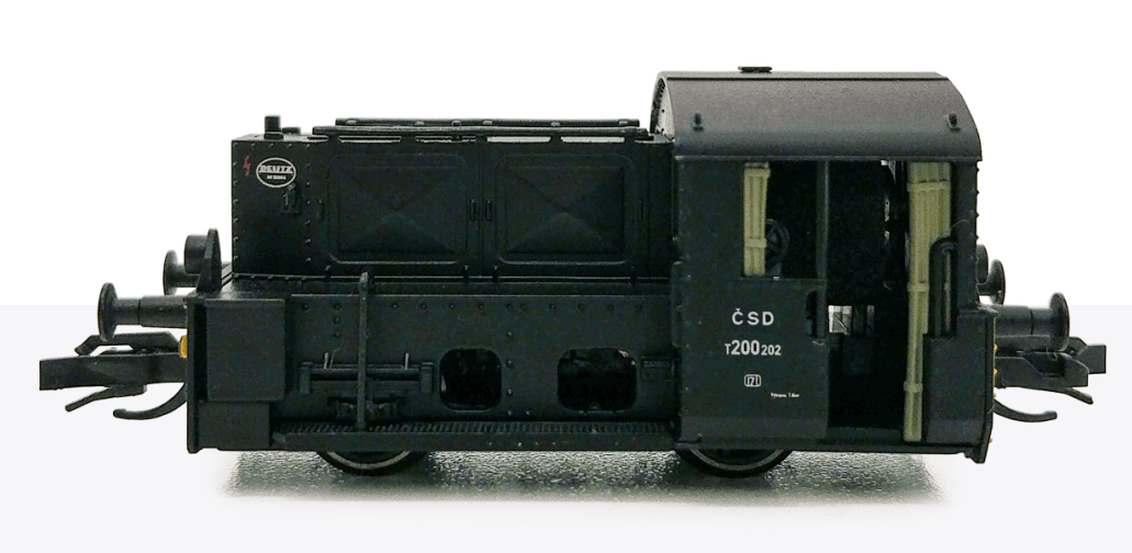 | dieselová lokomotiva černá, otevřená budka strojvedoucího |