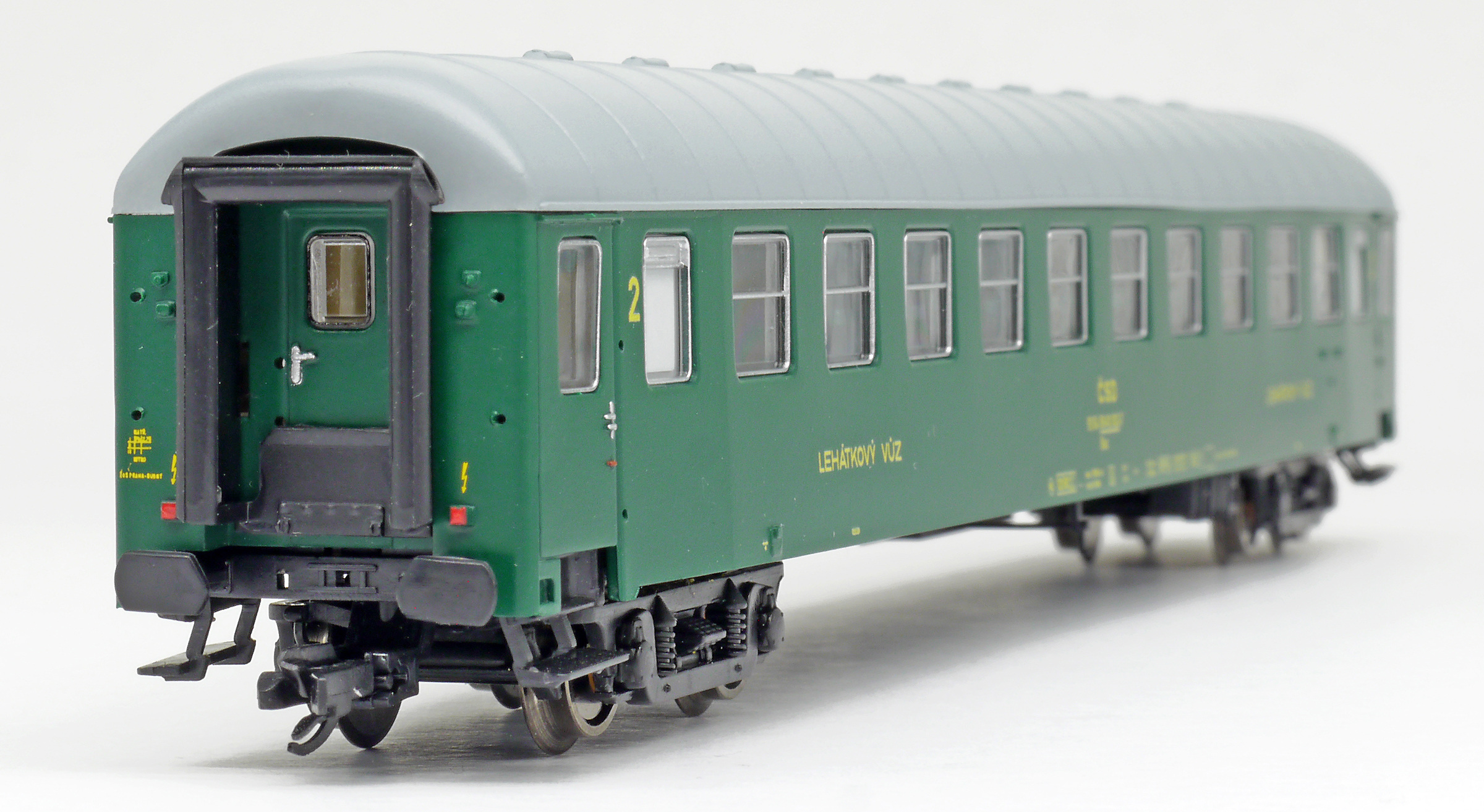 | lehátkový vůz zelený s šedou střechou 2. tř., Praha |