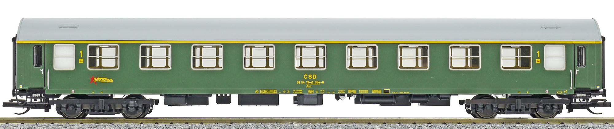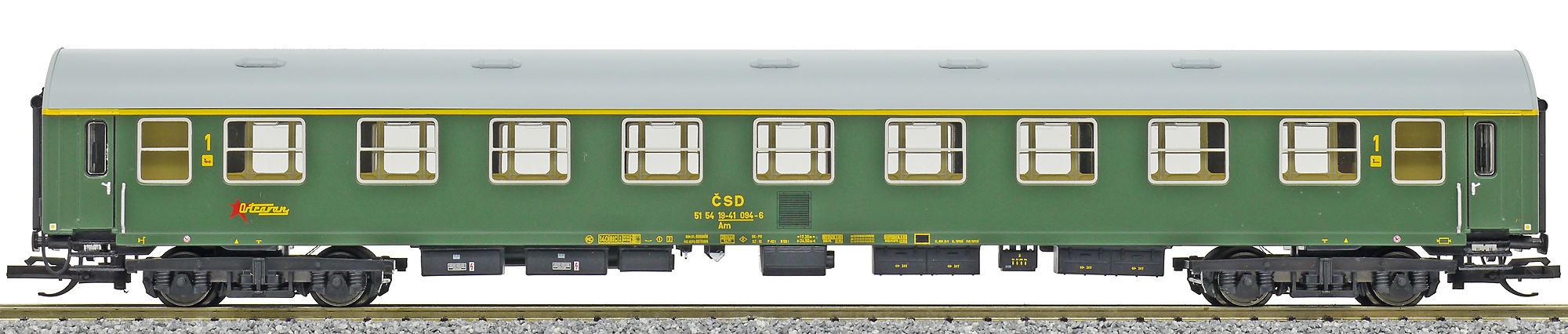 | rychlíkový vůz zelený s šedou střechou 1. tř. „Ostravan“ |