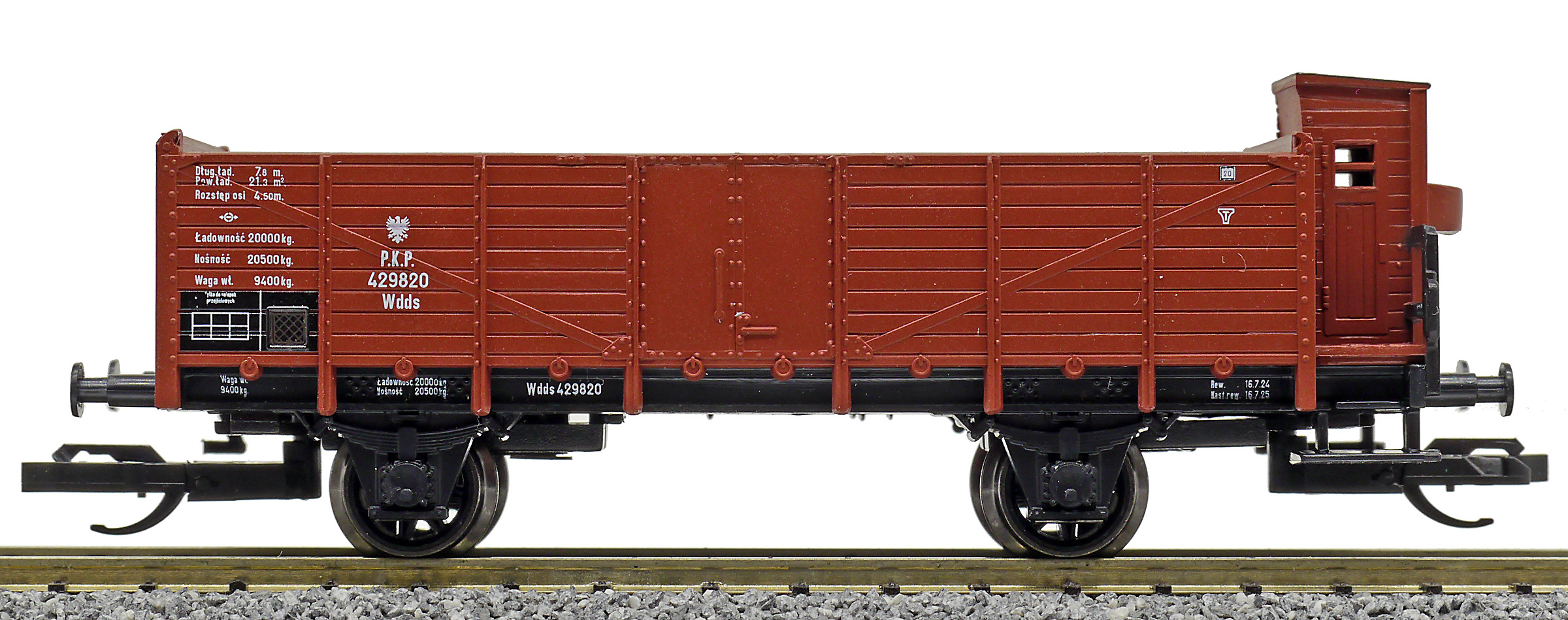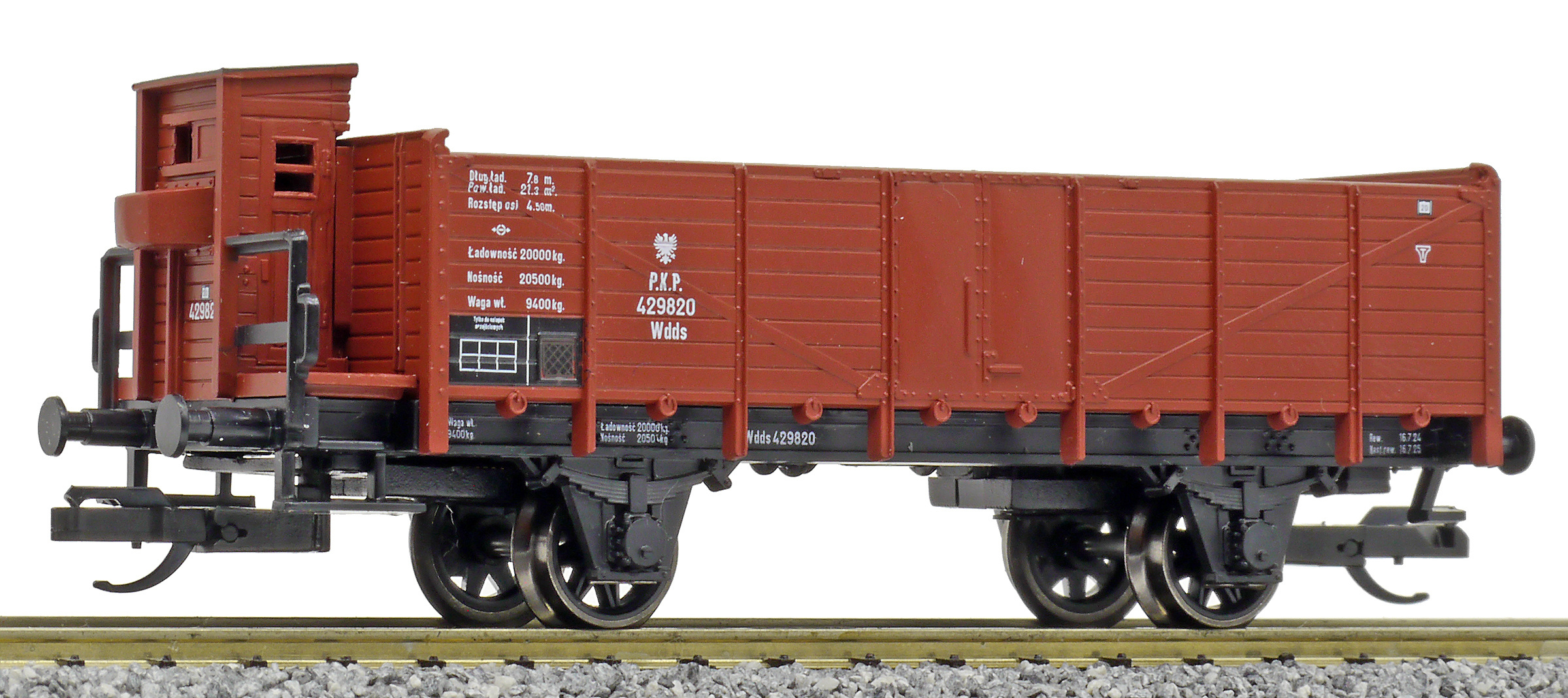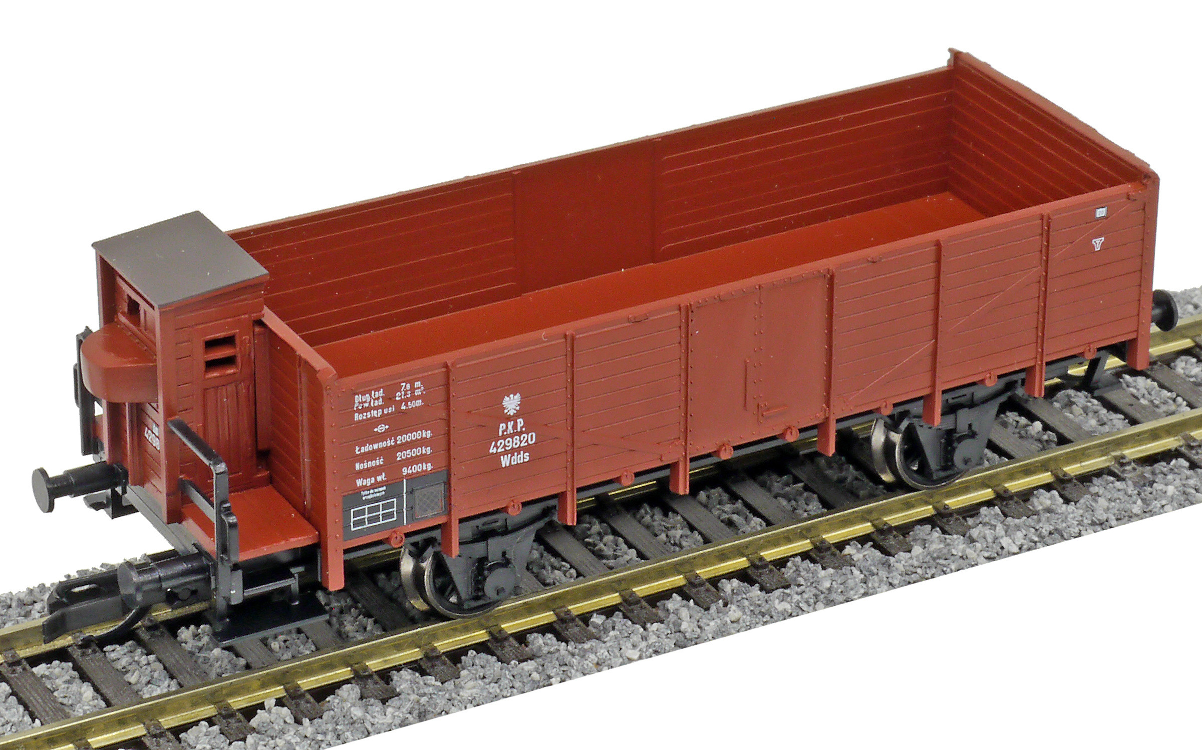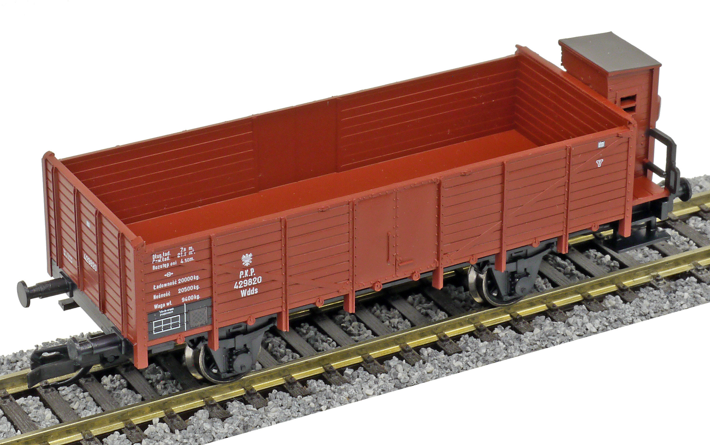 | otevřený nákladní vůz červenohnědý s brzdařskou budkou |