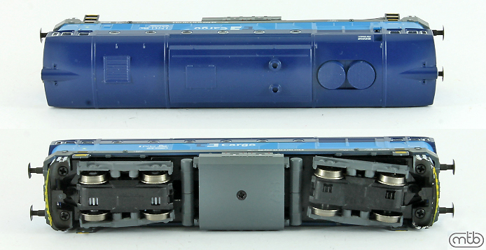 měřítko 1:120 - rozchod kolejí 12 mm osvětlení - 3 reflektory vpředu, 2 světla vzadu, přepínatelné podle směru jízdy 4 hnané nápravy 0 bandážovaných náprav kinematika krátkého spřáhla (KKK) podle normy NEM 358 digitální rozhraní podle NEM 658 s konektorem PluX16 setrvačník 137 mm - celková délka modelu přes nárazníky 4 - celkový počet náprav nebo rozložení náprav