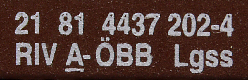 | • 21 81 4437 202-4 | → | nákladní, nezávislé nápravy, pevný rozchod, ve vlastnictví železniční správy, RIV, PPV |