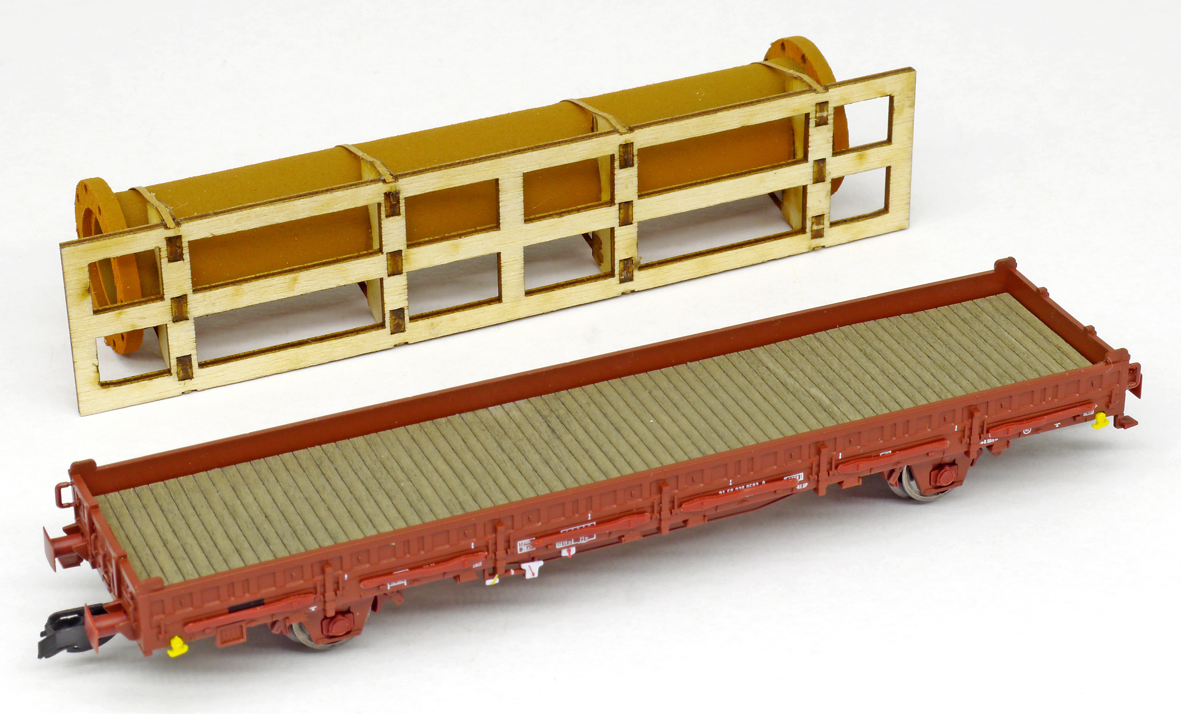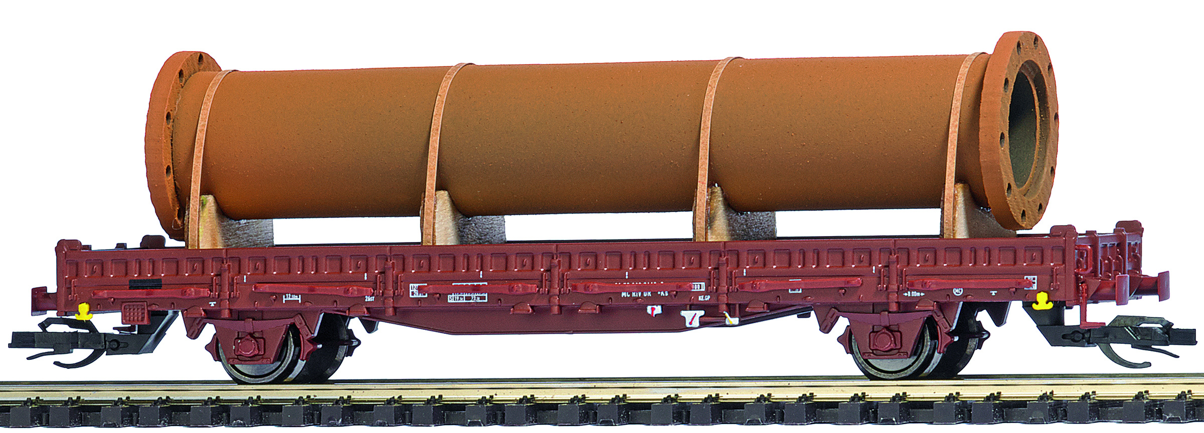 | nízkostěnný nákladní vůz červenohnědý s klanicemi s nákladem přírubové trubky |