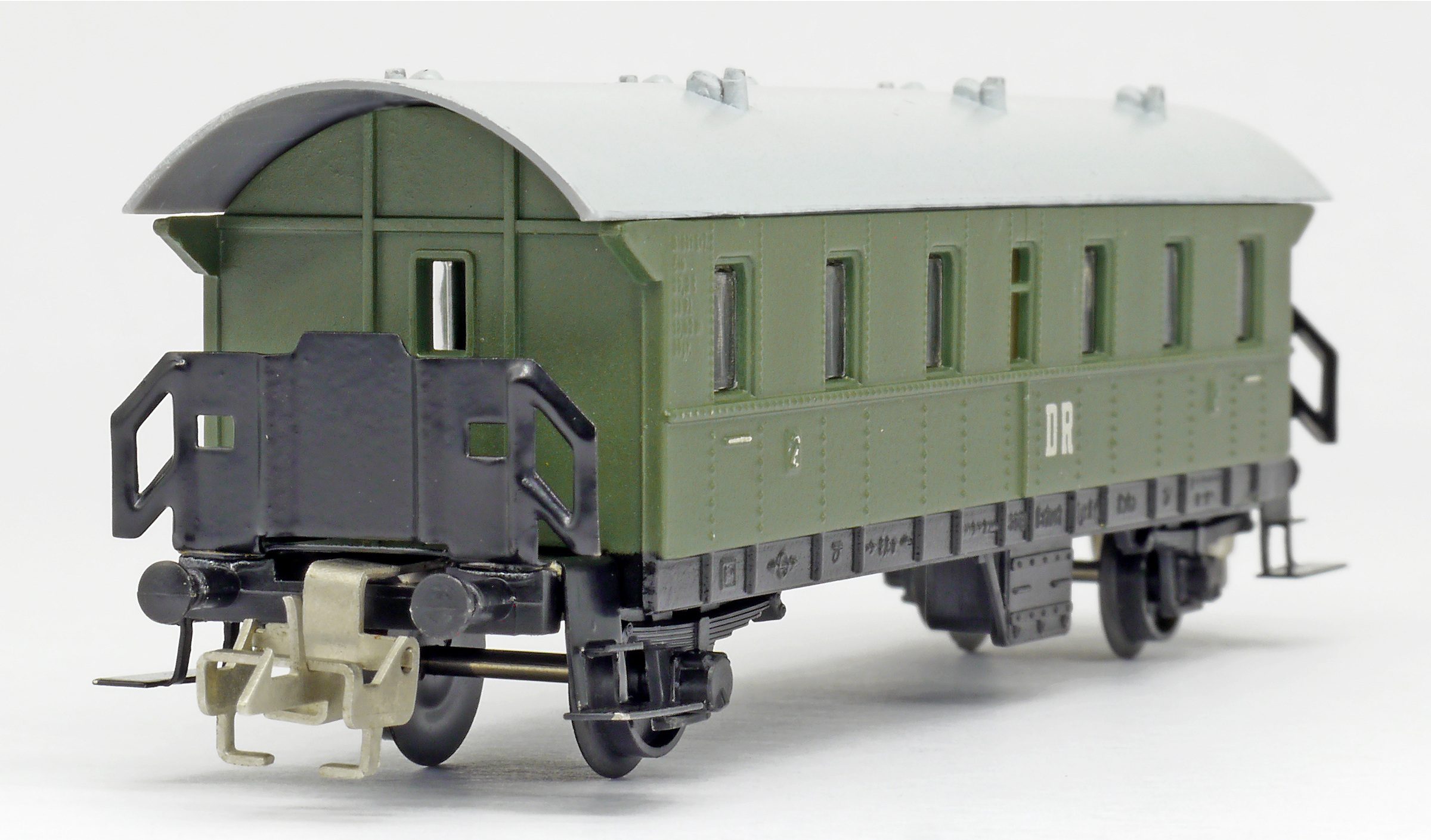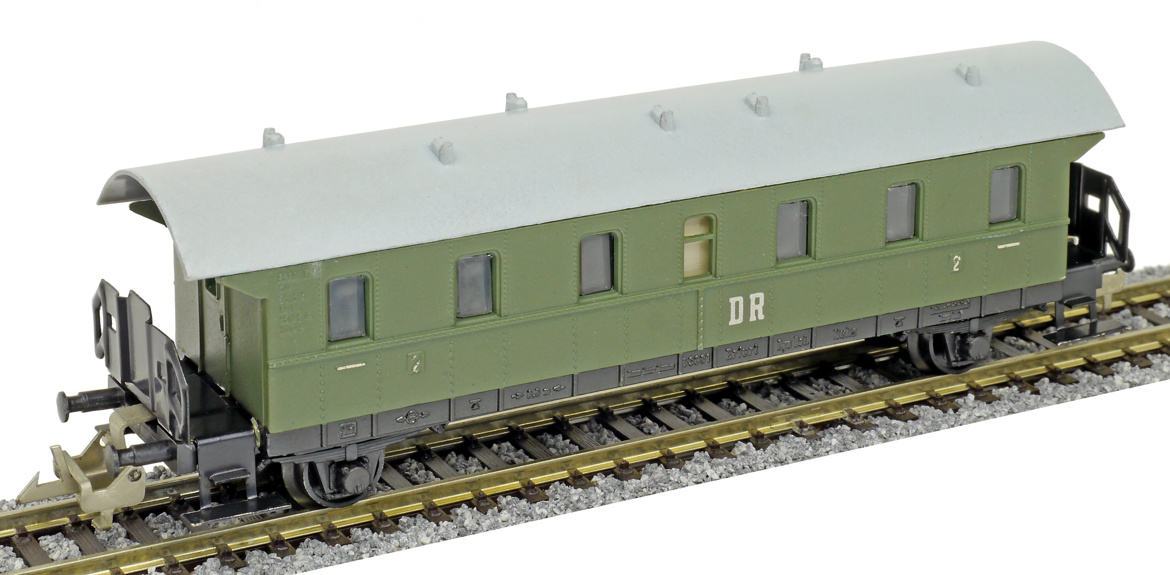 | osobní vůz zelený s šedou střechou 2. tř., bez brzd |