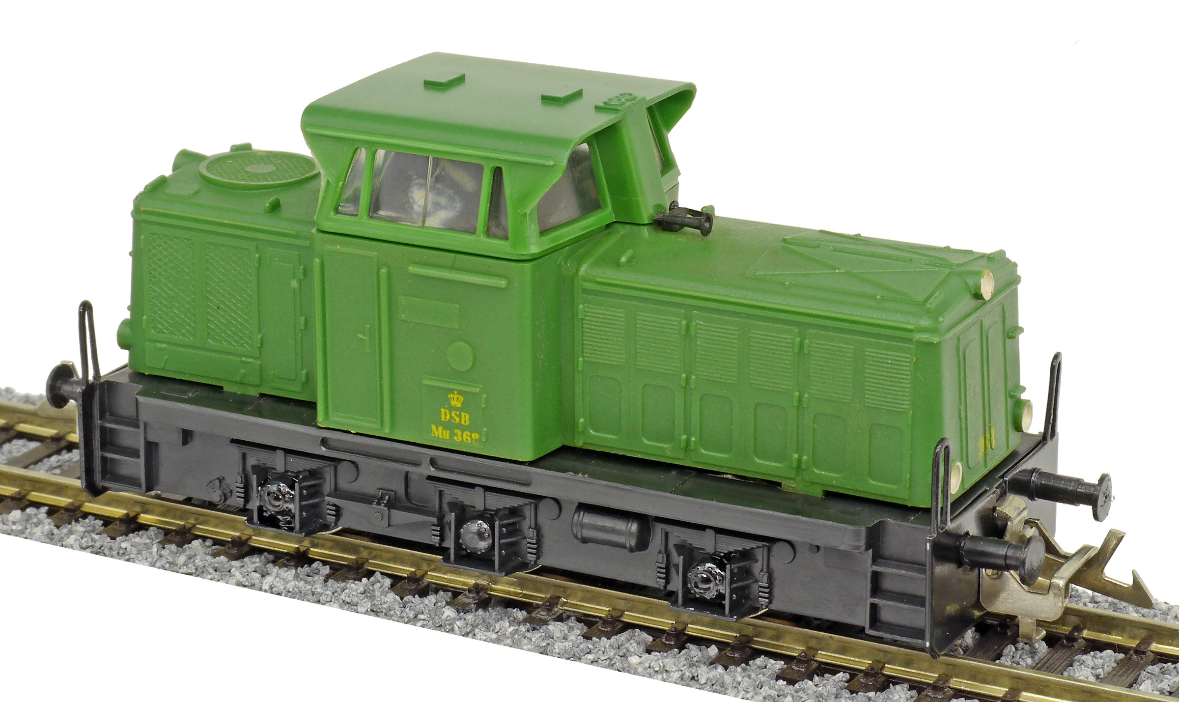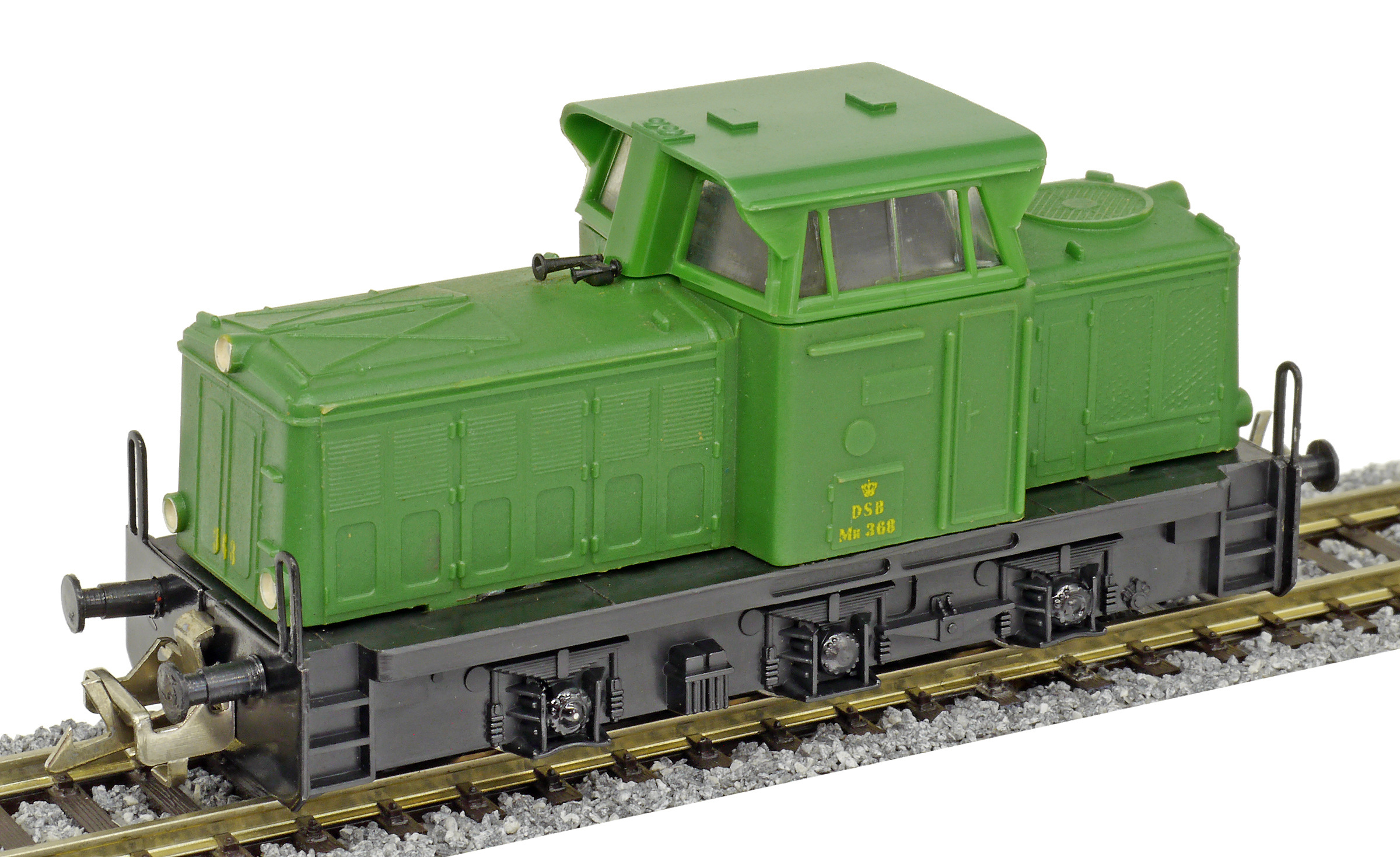 | dieselová lokomotiva zelená s černým rámem a pojezdem |