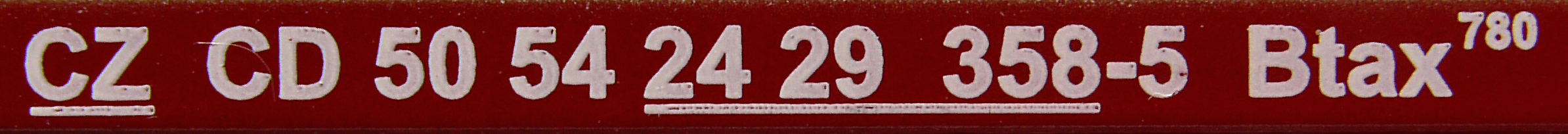 | • 50 54 24 29 358-5 | → | vůz druhé třídy 2 nápravový vúz |