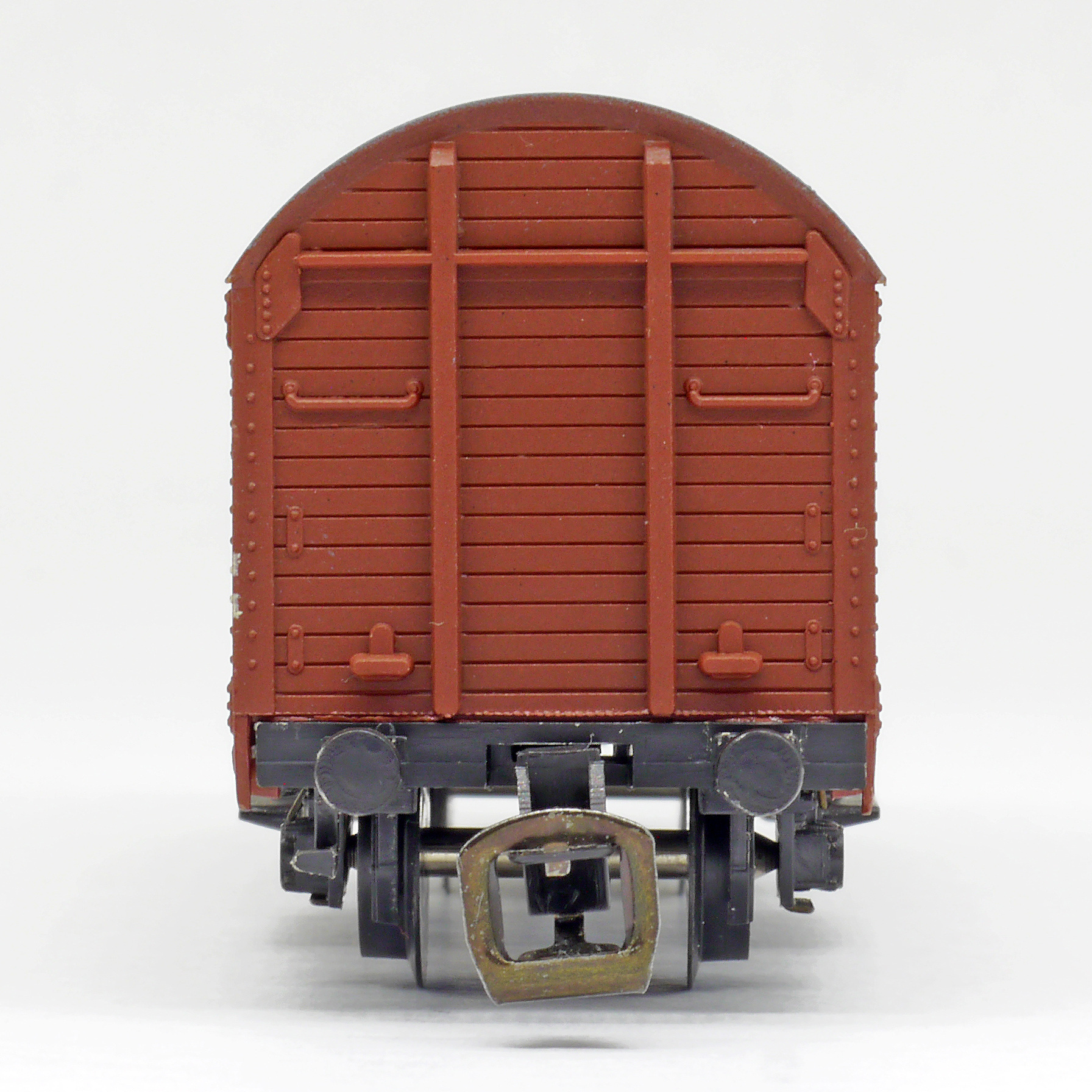 | krytý nákladní vůz červenohnědý s brzdařskou budkou |