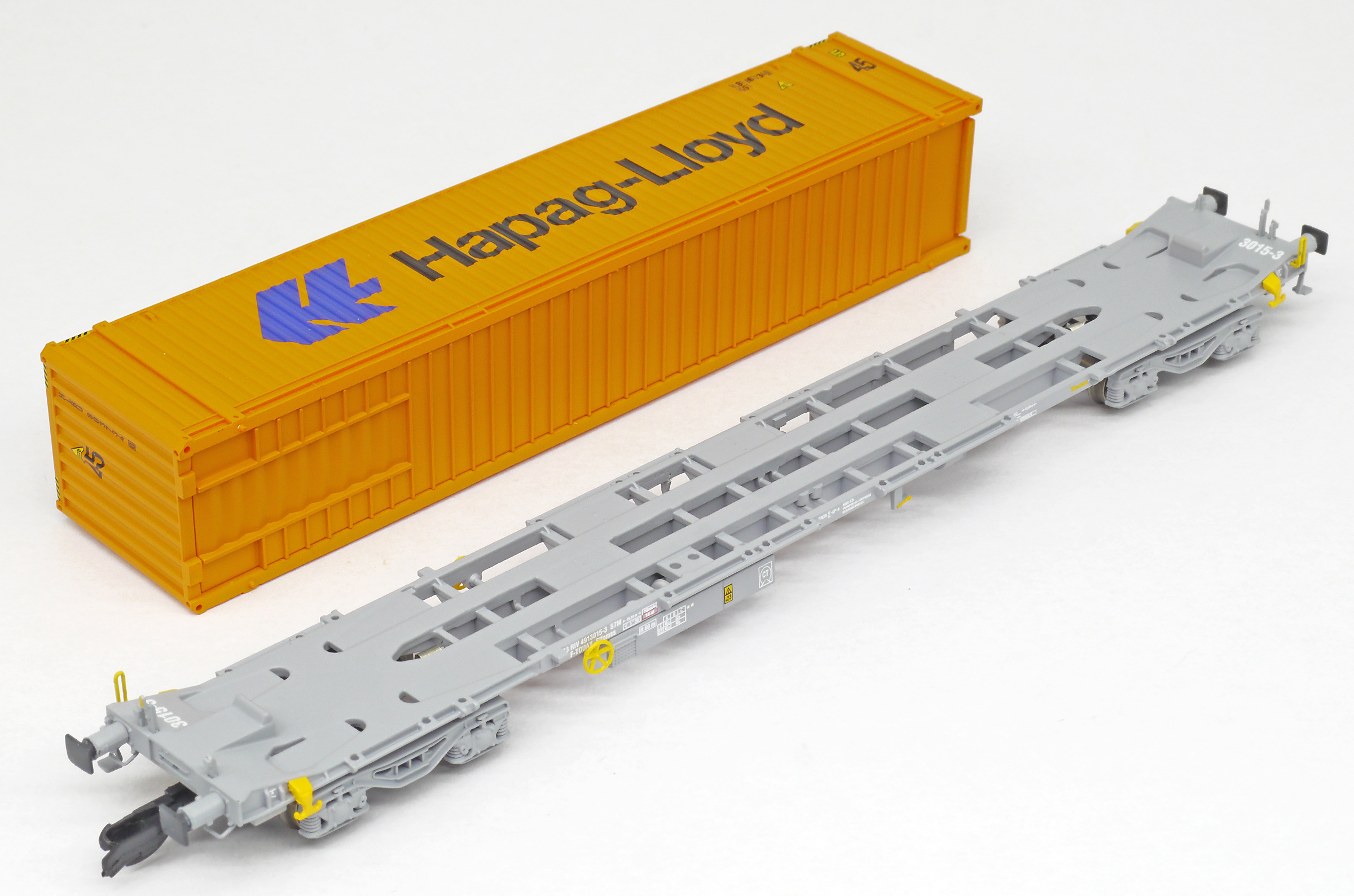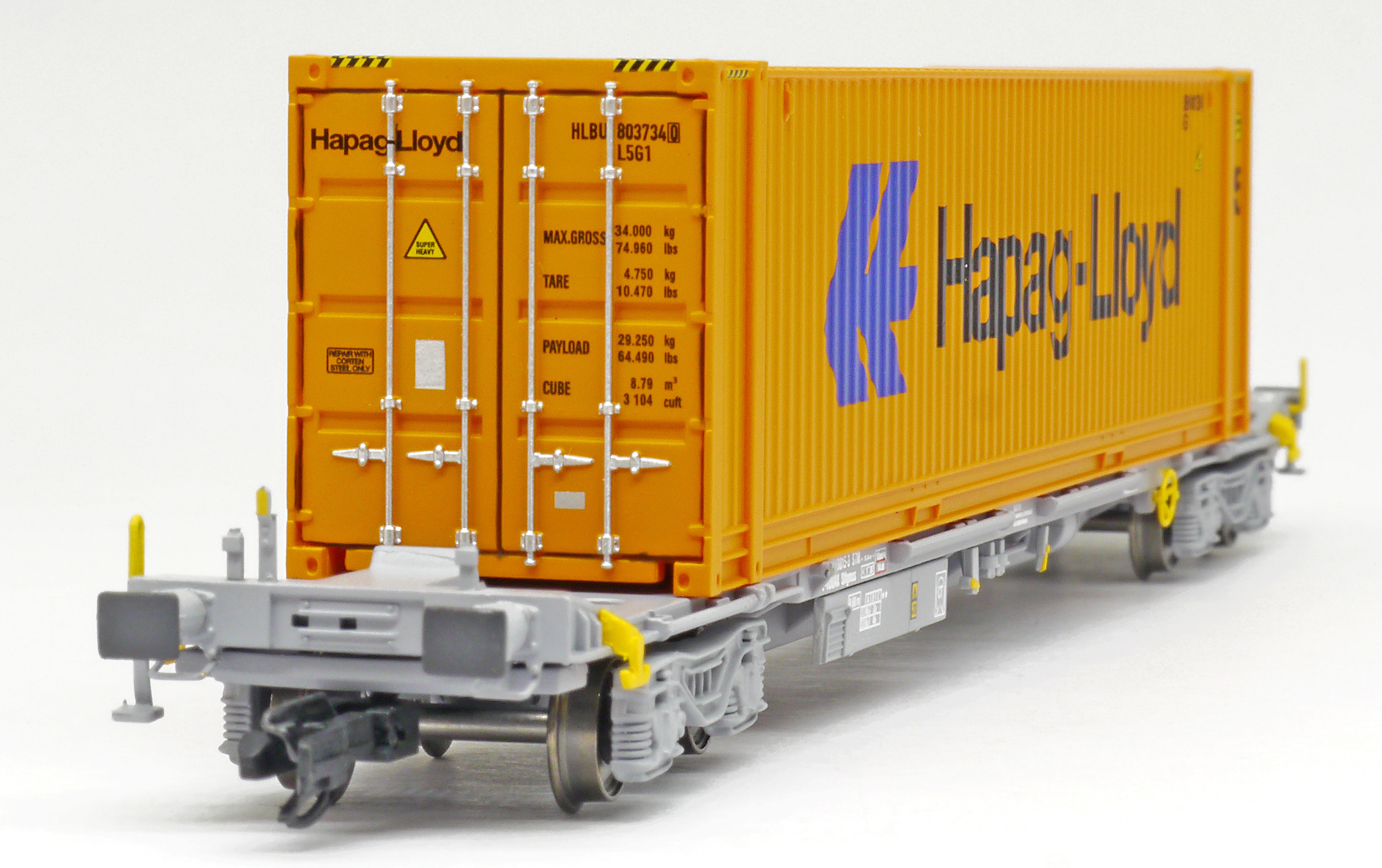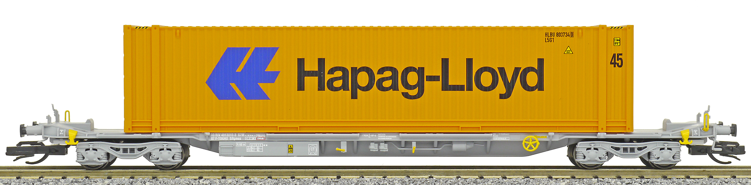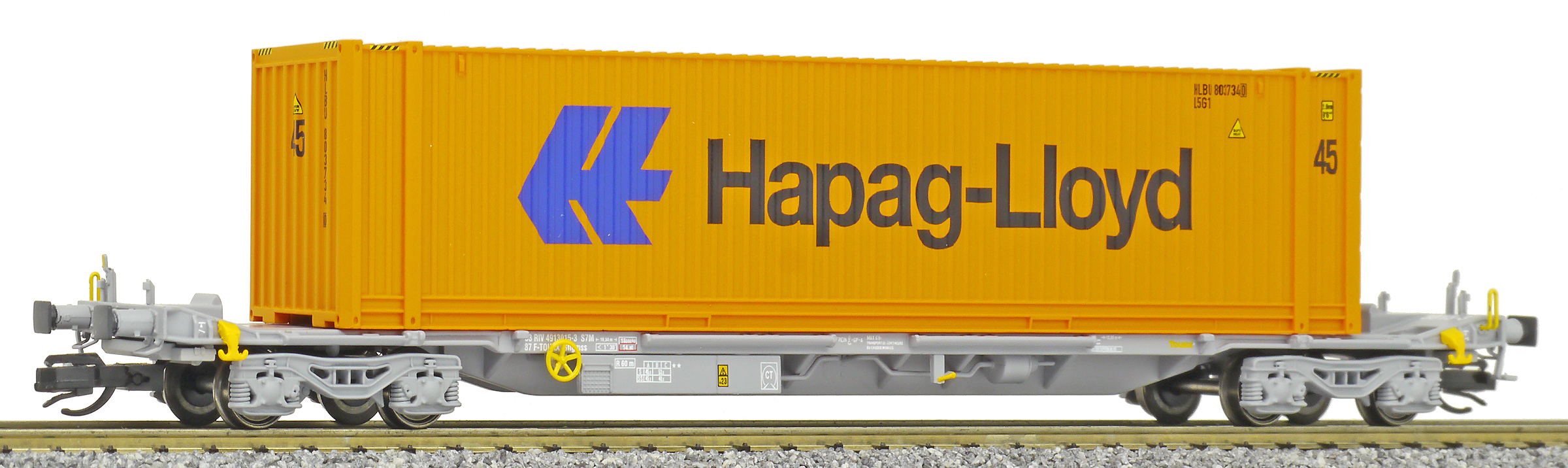 | kontejnerový vůz „IFA” šedý ložený 45' kontejnerem „Hapag-Lloyd” |