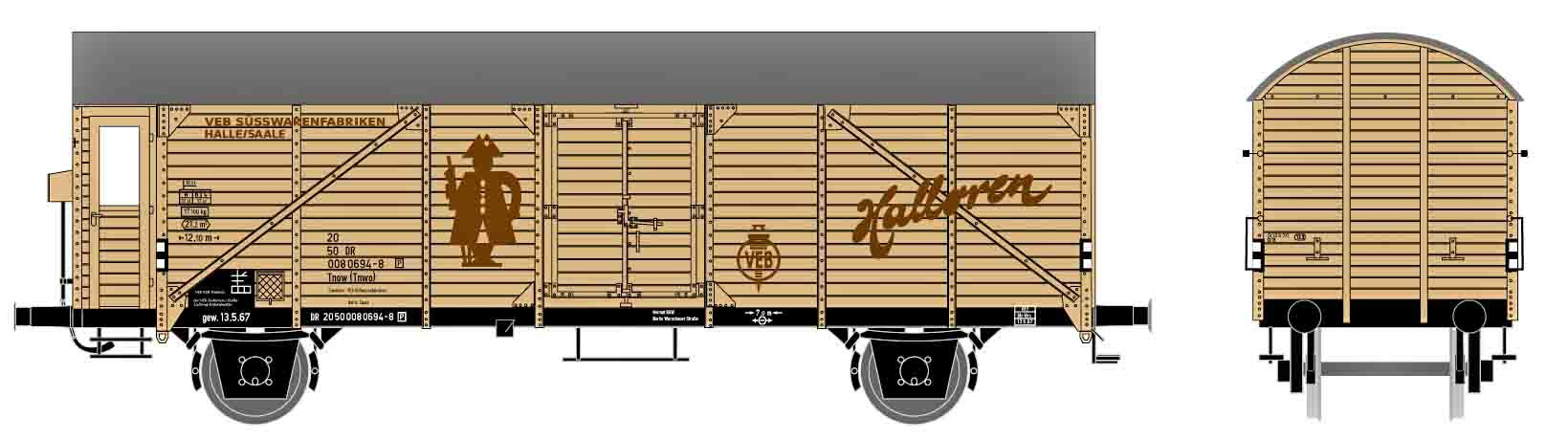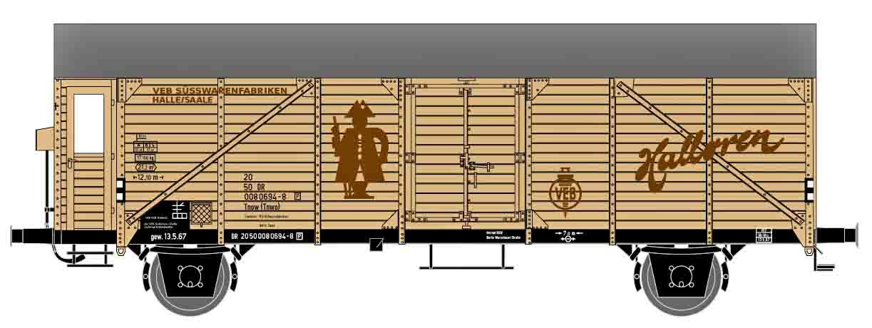 Popis   nákladní vůz s tepelnou izolací krémový s hnědou střechou „Halloren“