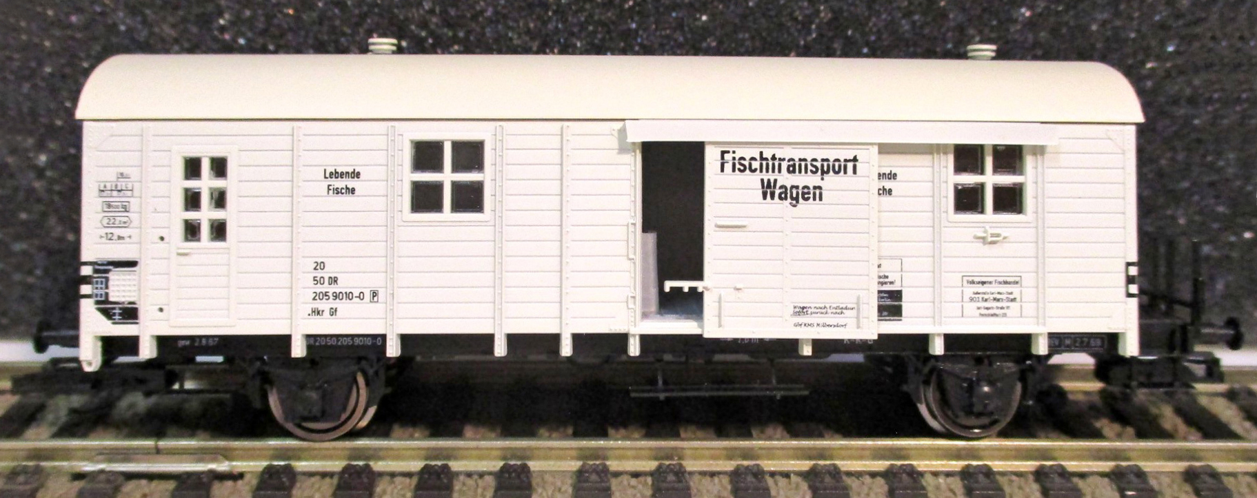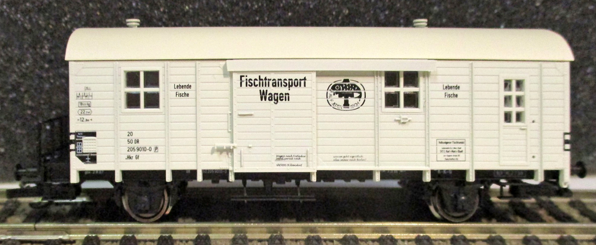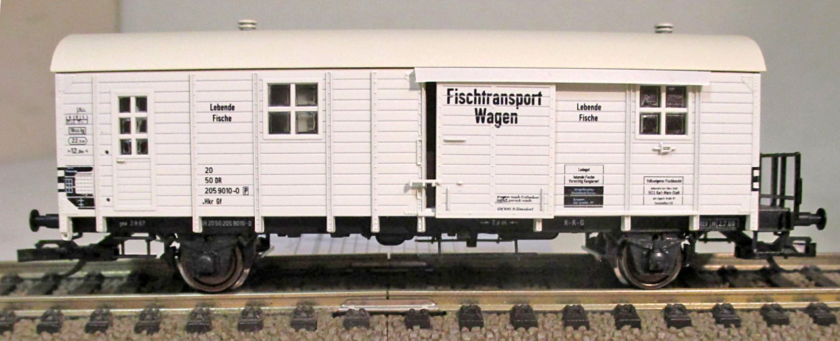 | chladící nákladní vůz bílý s béžovou střechou na přepravu ryb „Kraftwerksfische-VII“ |