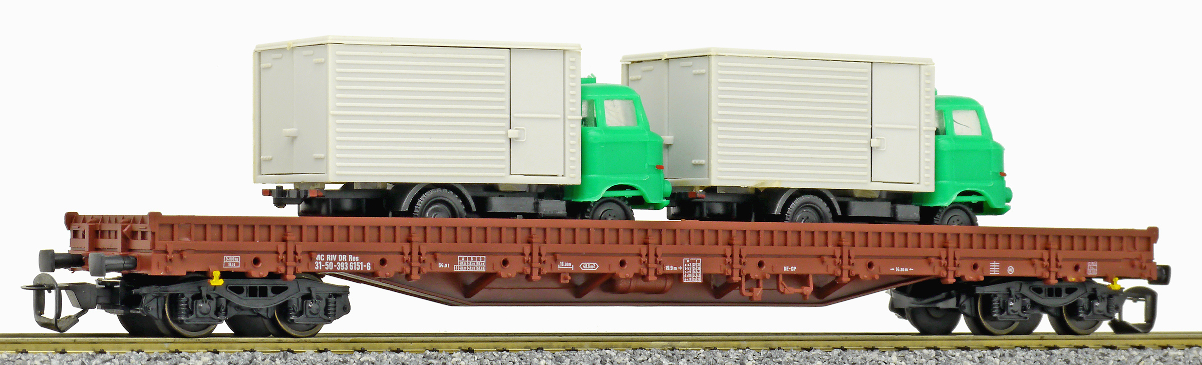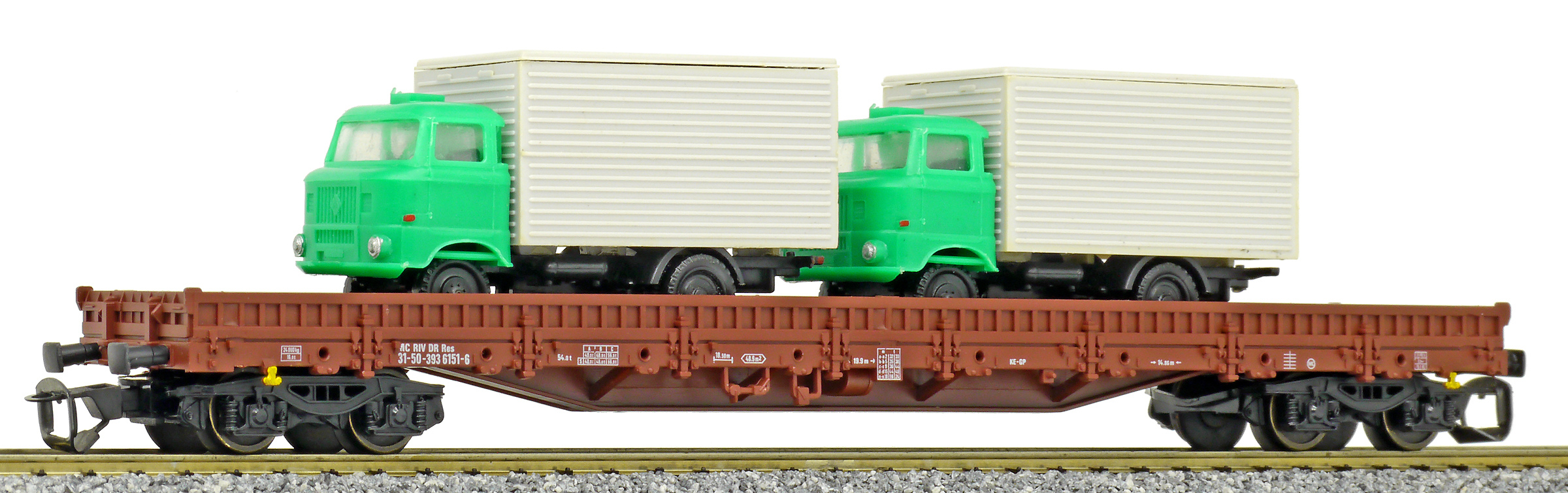 | • 31 50 393 6151-6 | → | nákladní, s podvozky, pevný rozchod, ve vlastnictví železniční správy, RIV, PPV |