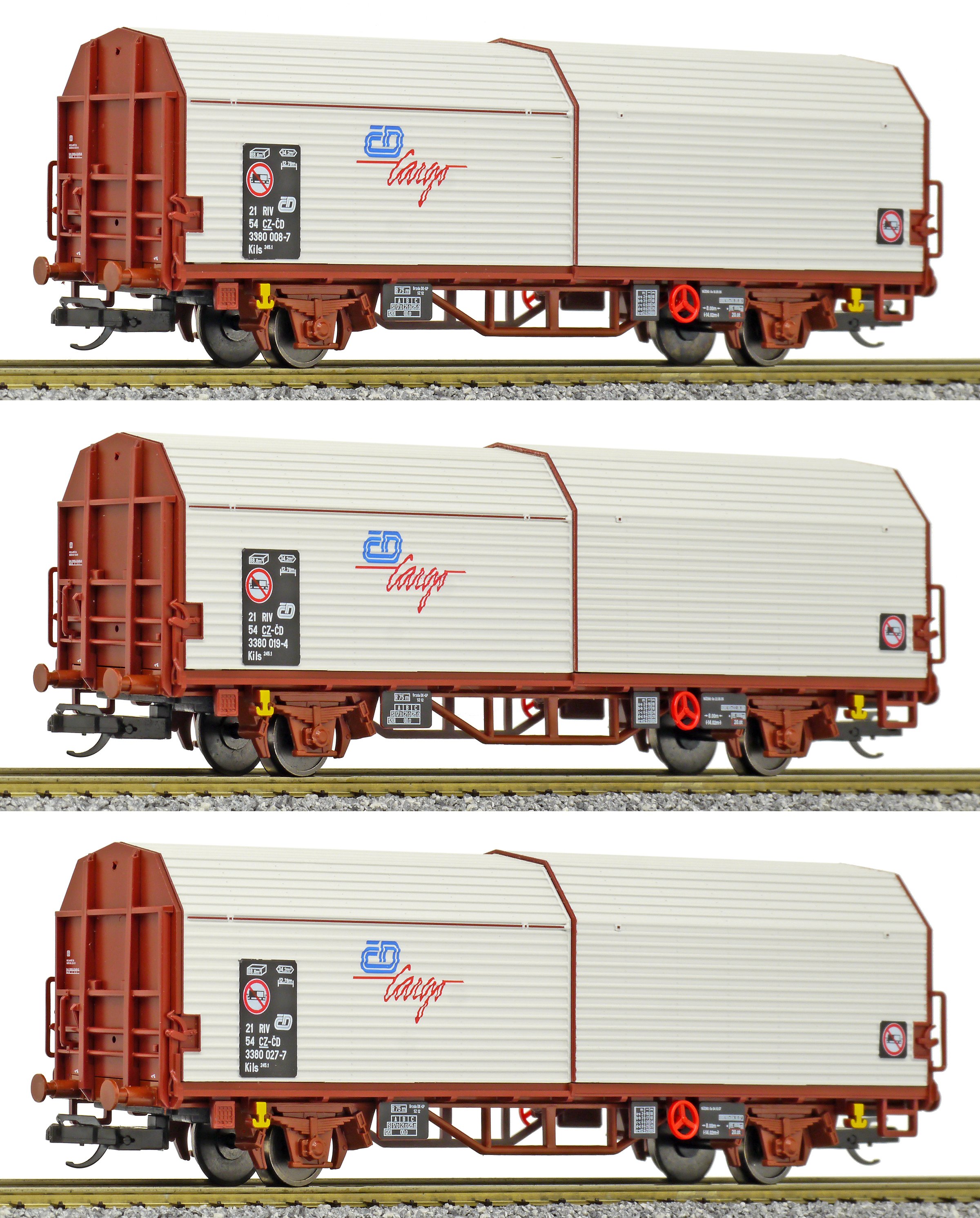 | set tří nákladních vozů s odsuvnými stěnami |